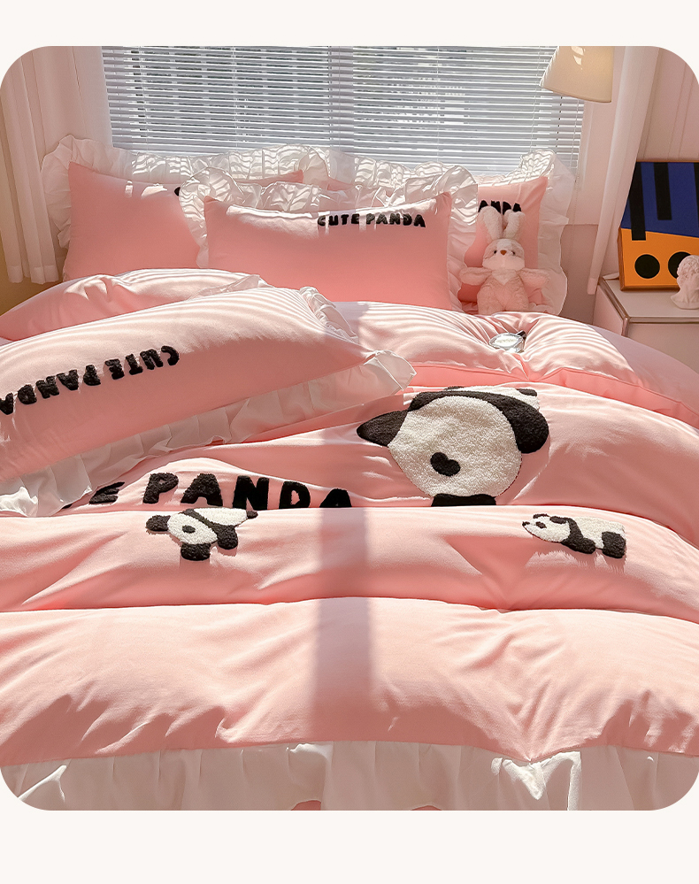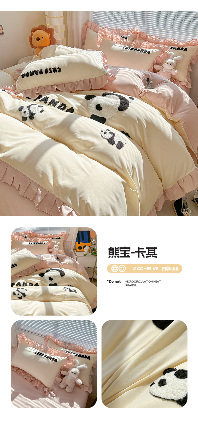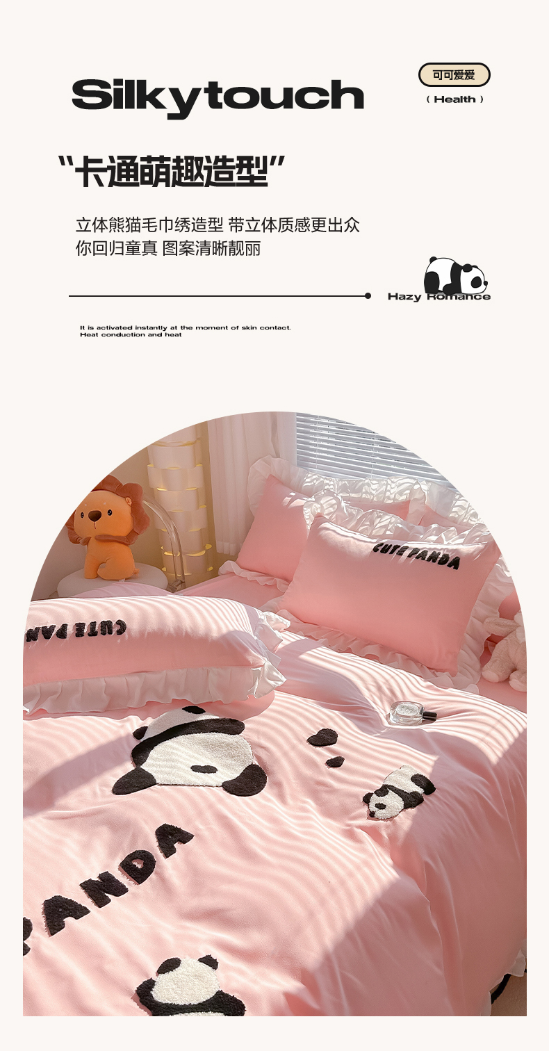 (总)韩都家居 2025新款牛奶绒毛巾绣四件套-系列一,熊猫懒懒,蛋糕猫-粉格,蛋糕猫-兰格,欢乐狗,腊肠狗,圣诞树,小白鸭