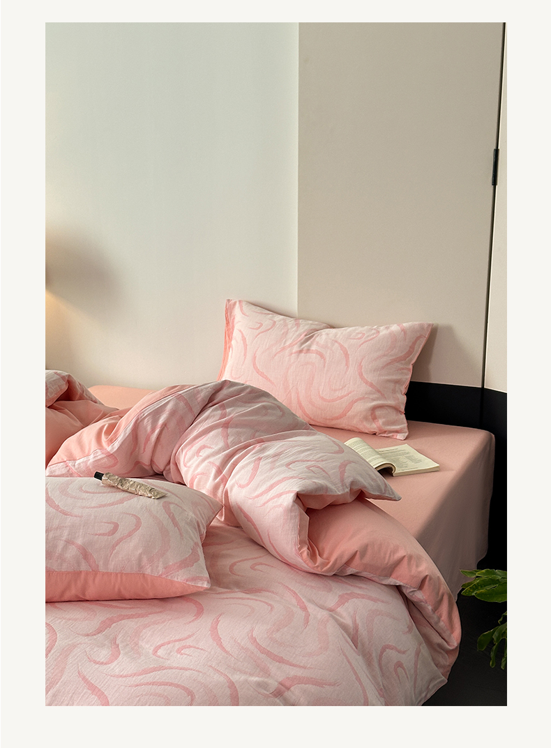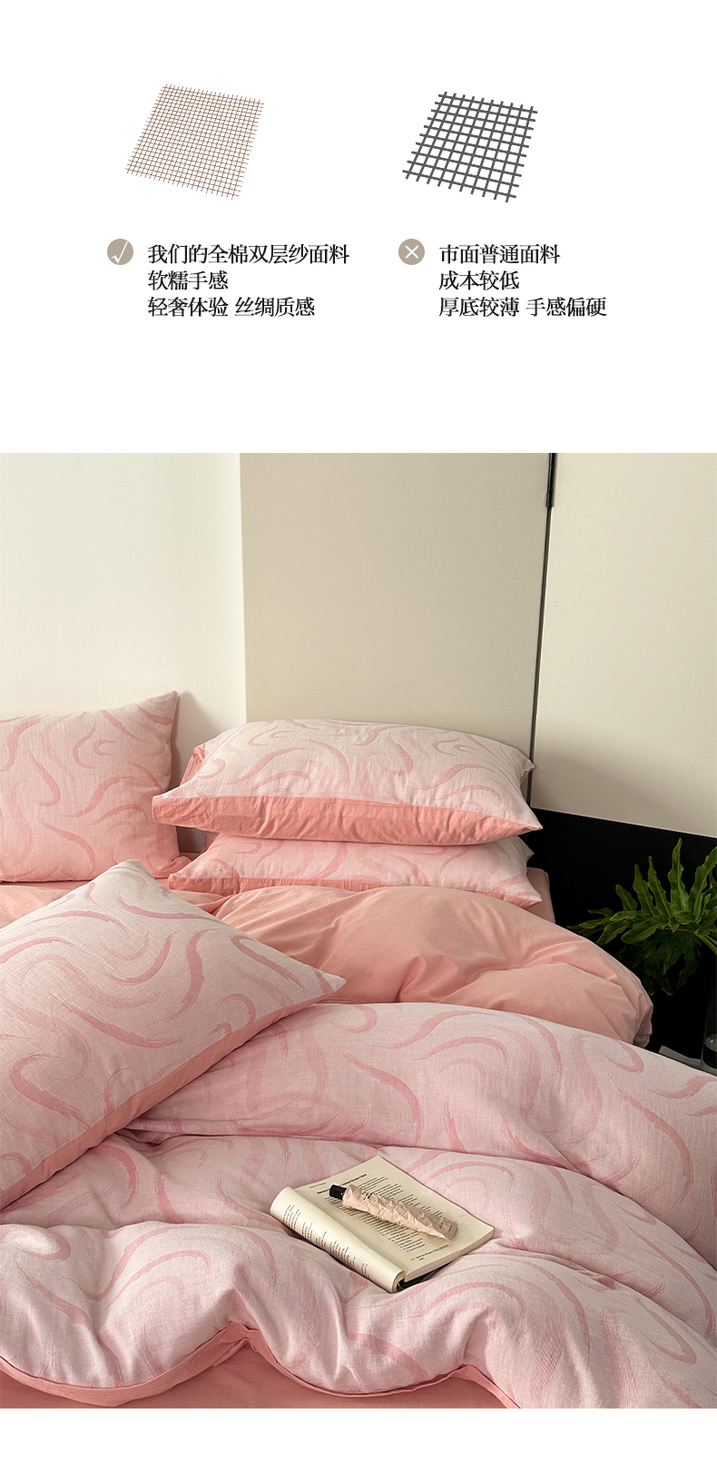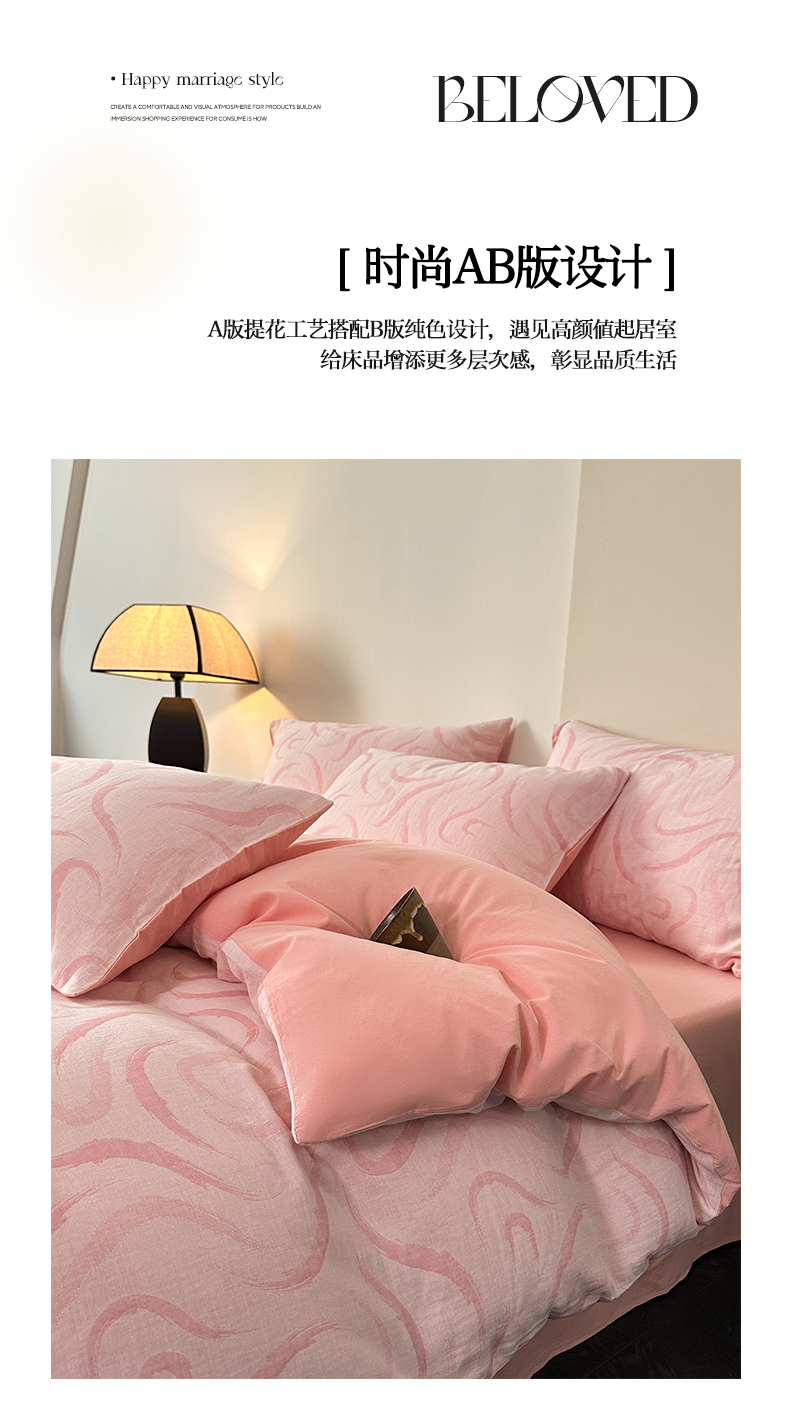 雅居纺家纺 2024新款全棉双层纱色织提花四件套 潮流-粉
