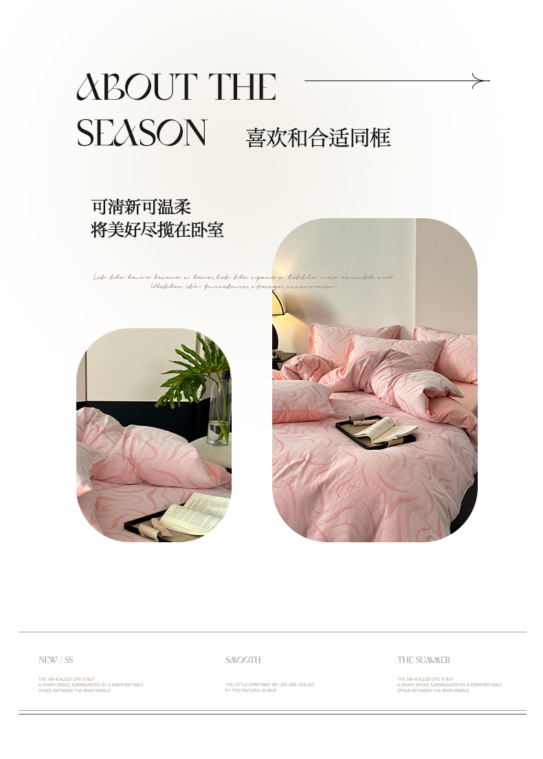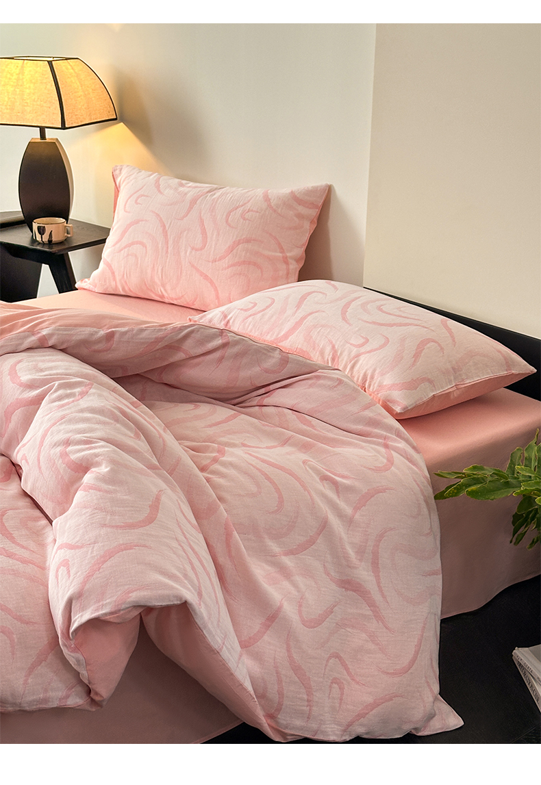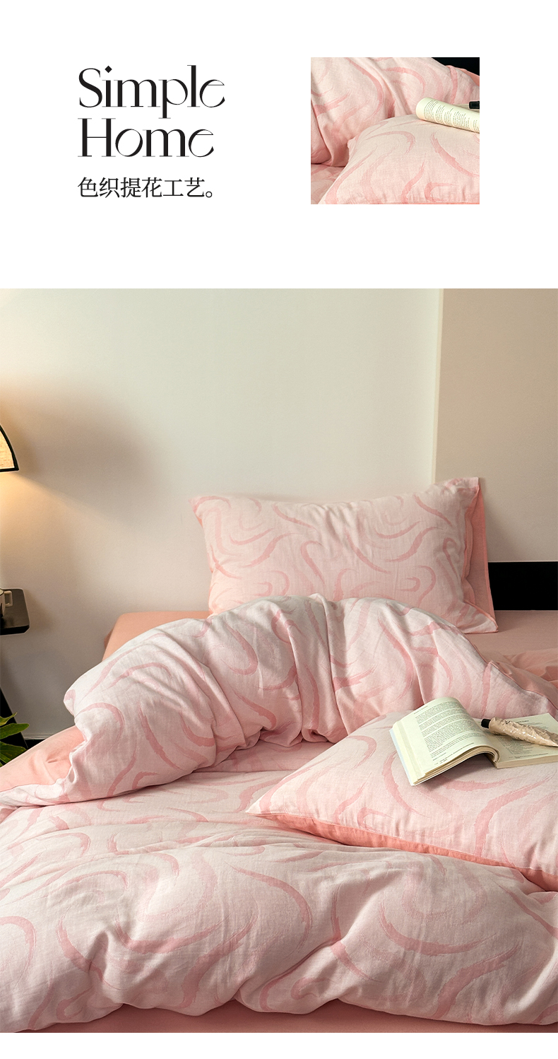 商品名称:雅居纺家纺 2024新款全棉双层纱色织提花四件套 潮流-粉