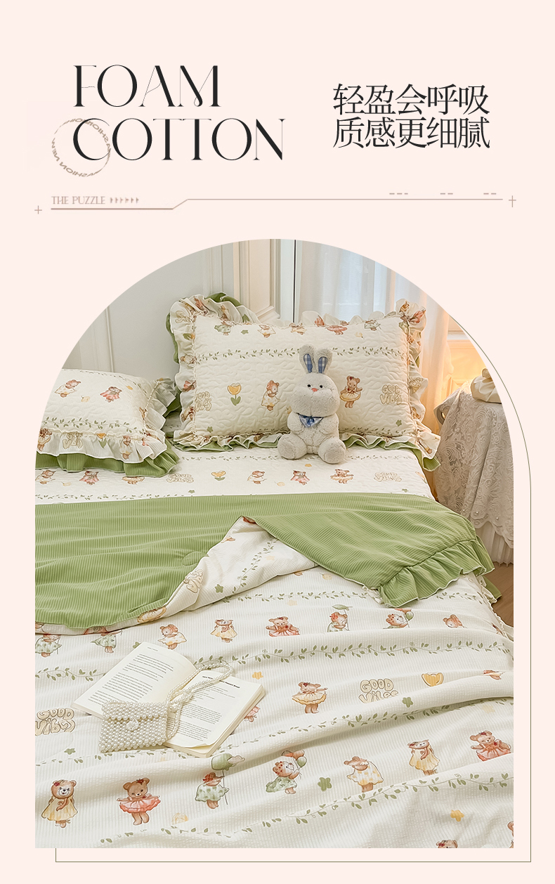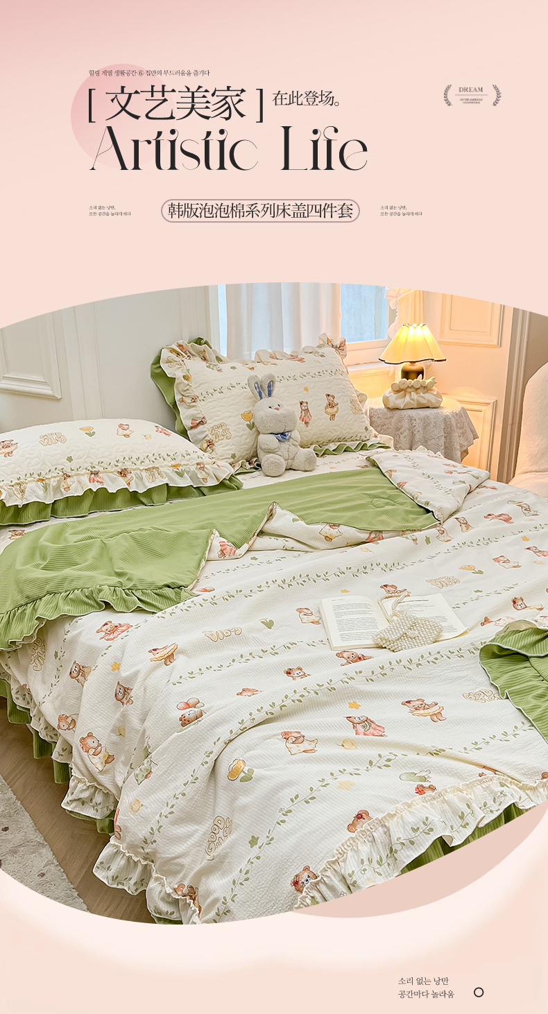 商品名称:恒爱家纺 2024新款韩版泡泡棉床盖系列四件套 熊熊乐园