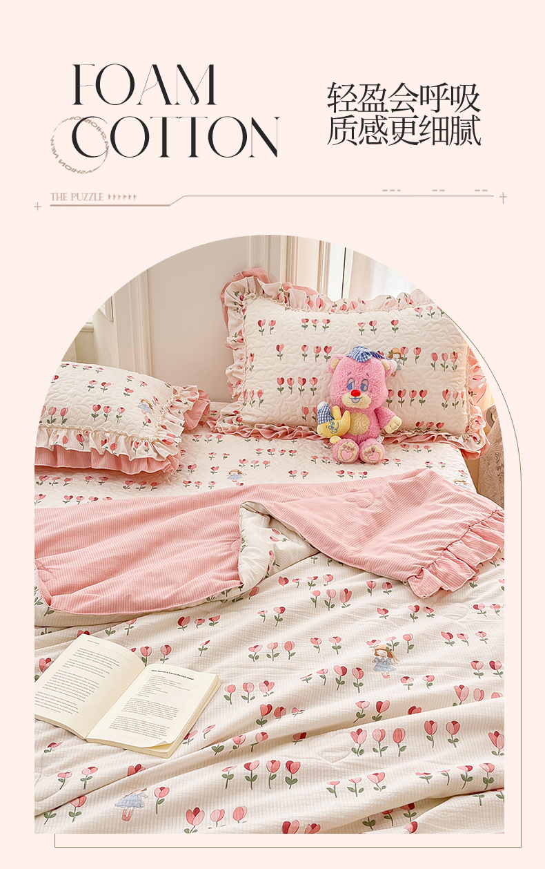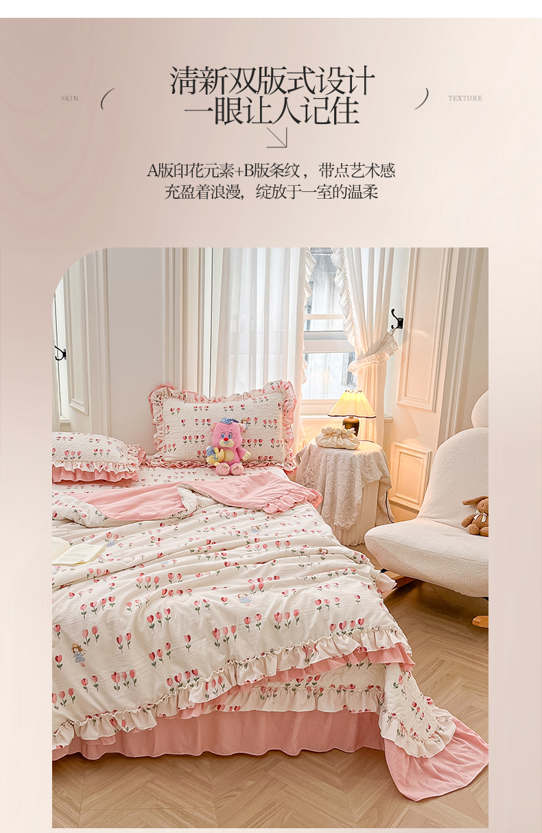 恒爱家纺 2024新款韩版泡泡棉床盖系列四件套 郁金香