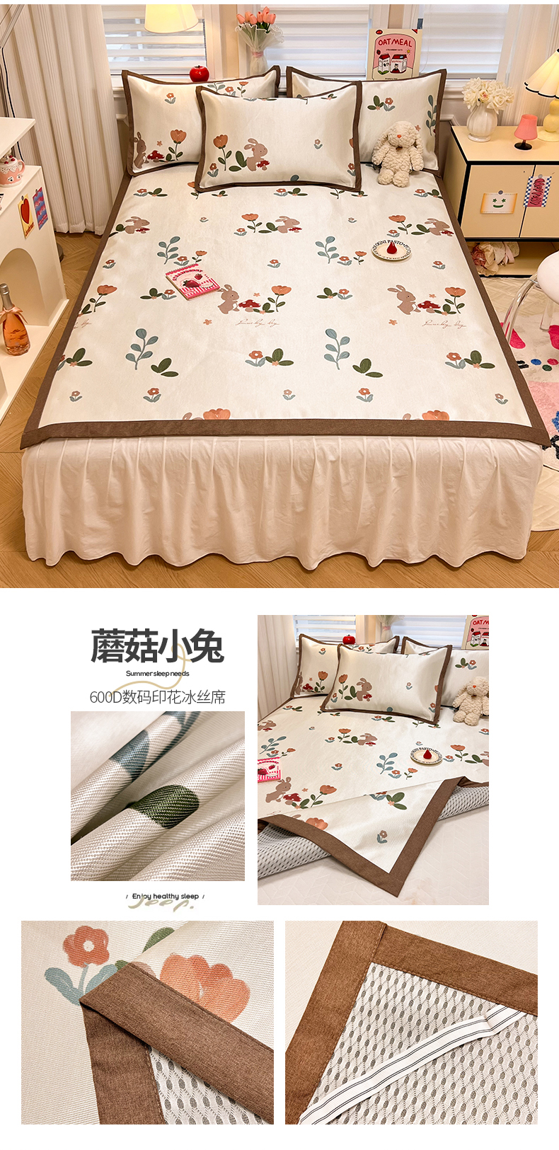 商品名称:懒猫 2024新款600D数码印花冰丝凉席 蘑菇小兔