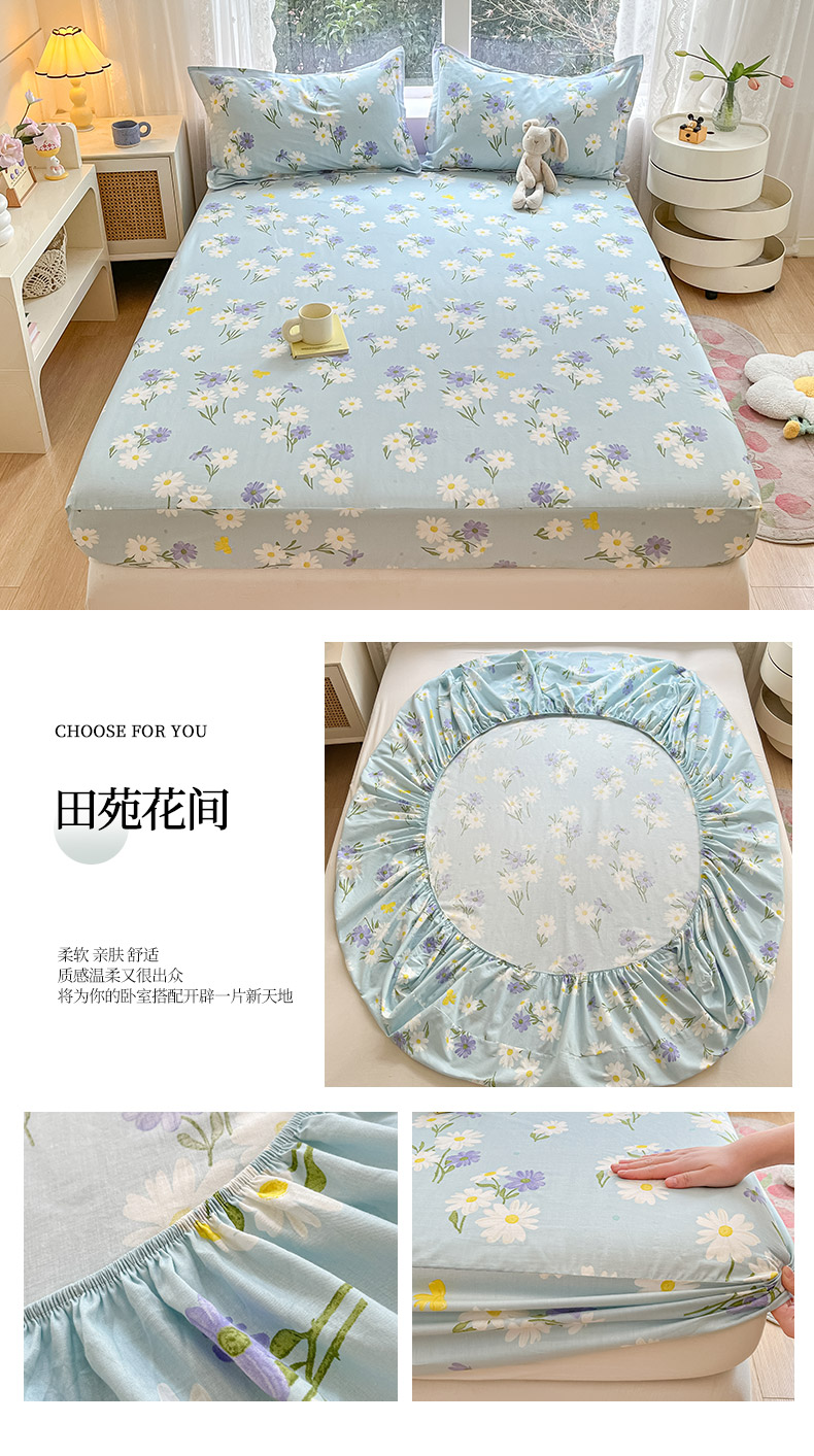 绵庭家纺 2024新款AB版12868全棉印花单床笠 田苑花间