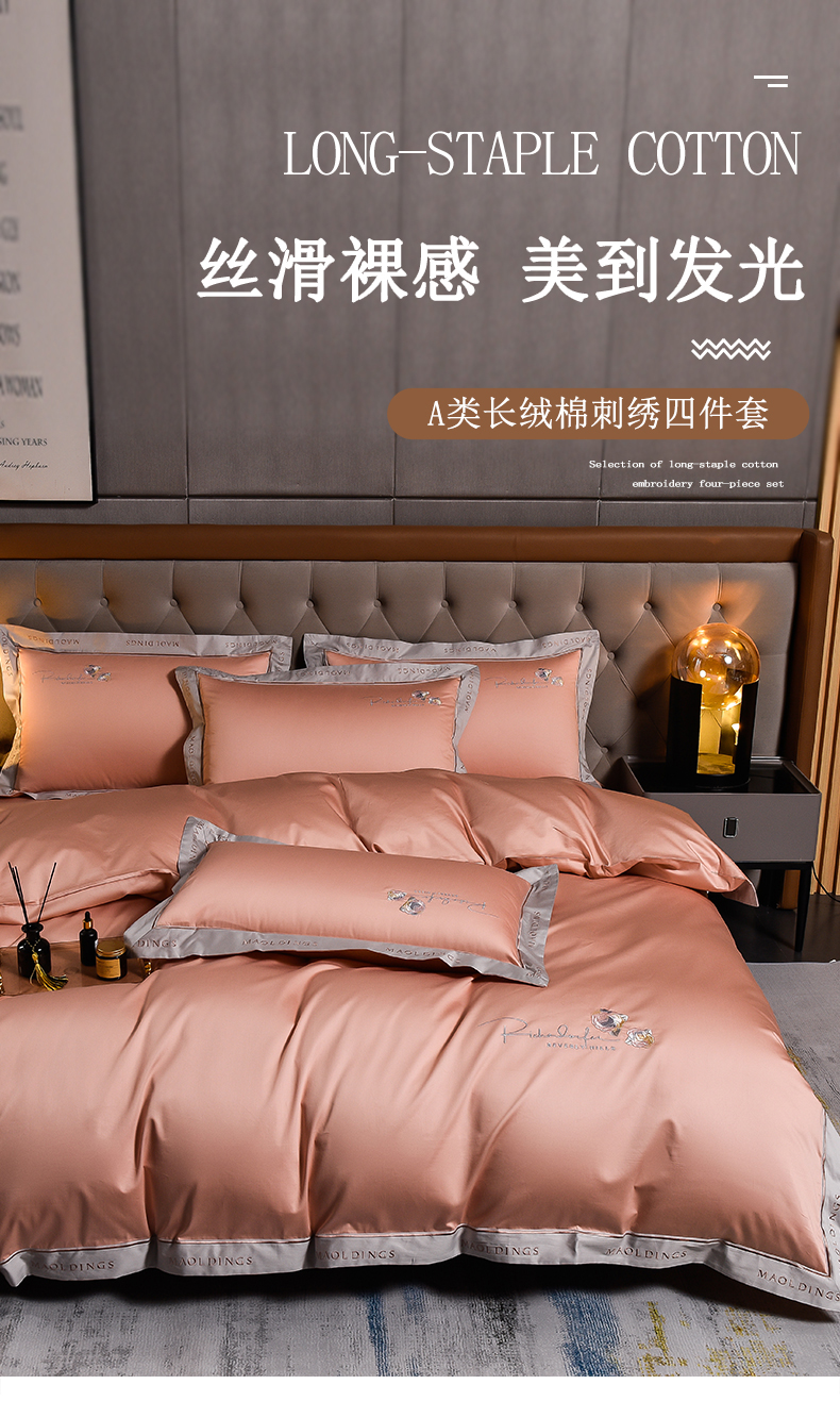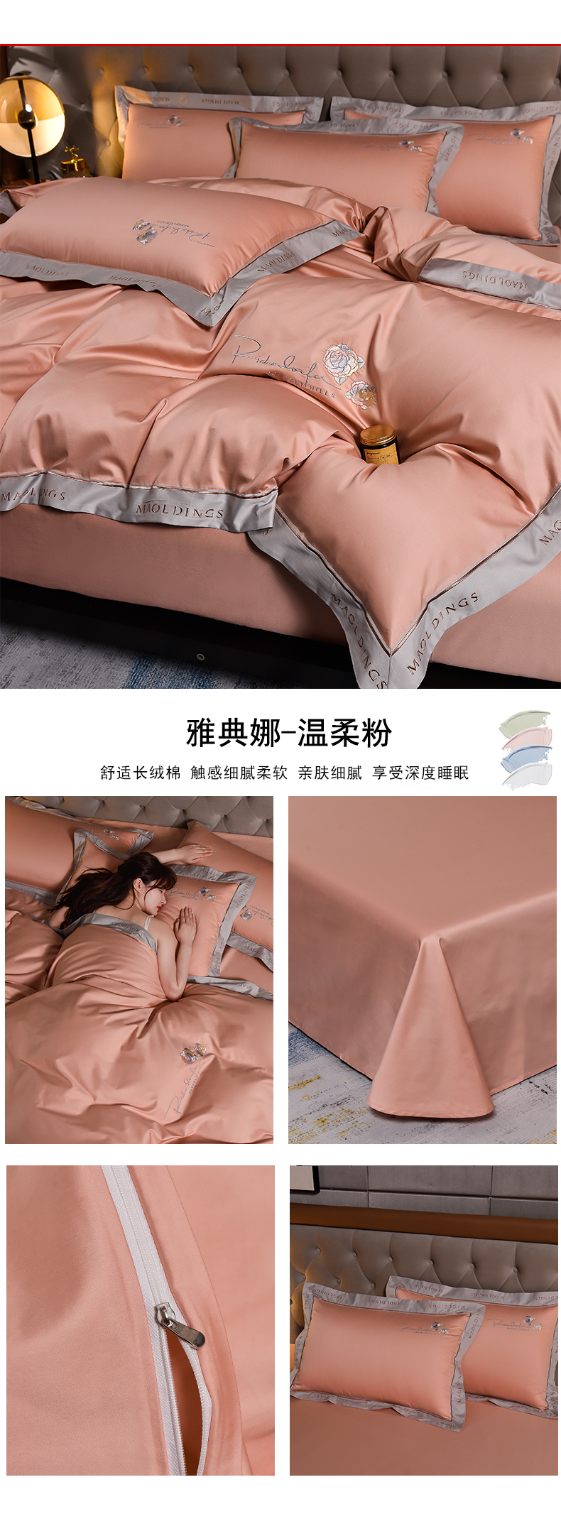 商品名称:瑞驰家纺 2024新款A类长绒棉刺绣四件套-雅典娜系列 雅典娜-温柔粉