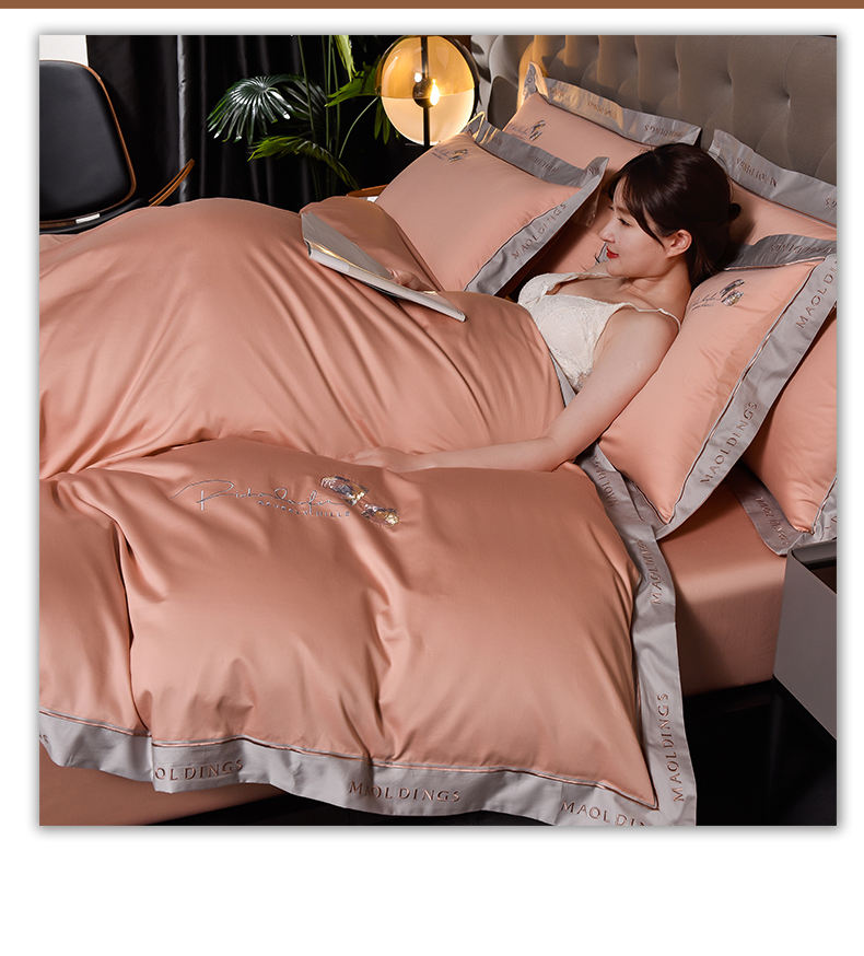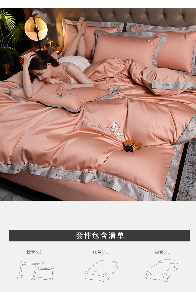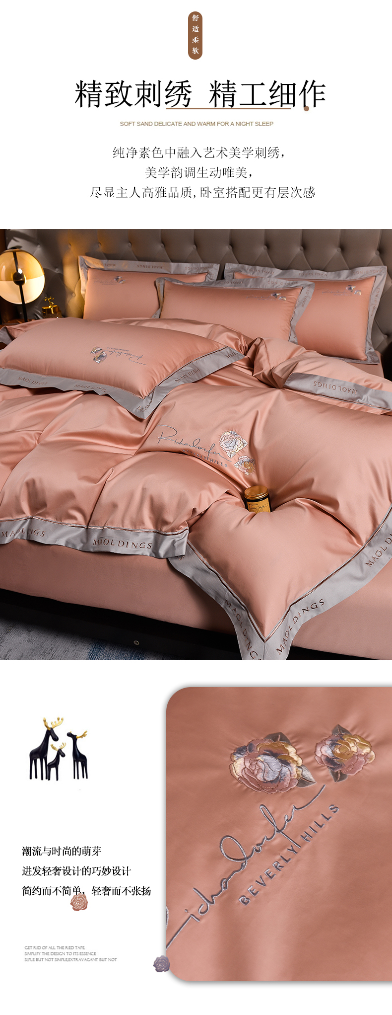 (总)瑞驰家纺 2025新款长绒棉绣花莱桉系列四件套,莱桉-贝壳白,莱桉-朵拉灰,莱桉-驼褐,莱桉-棕橙