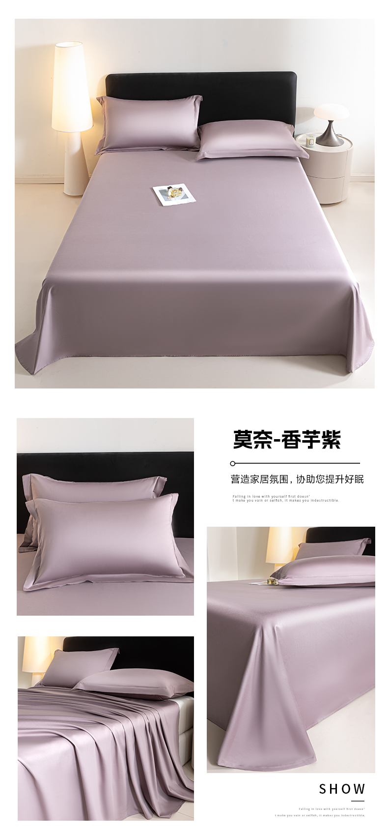 • 91家纺网 家纺一手货源 找家纺 秀色家纺 2025新款高端新疆长绒棉床单单件纯棉50支贡缎全棉床单双人贡缎加厚被单三件套 莫奈-香芋紫