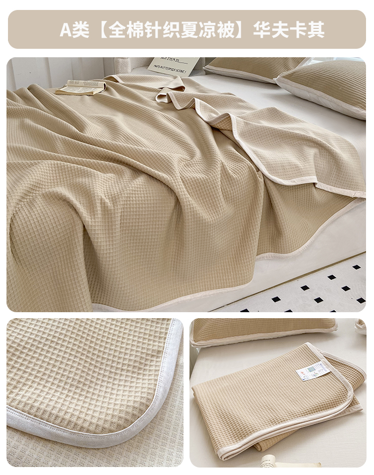 商品名称:来菲毛毯 2025新款全棉A类盖毯夏凉被 卡其
