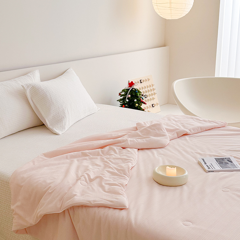 珺柔 2024新款 华夫格针织夏凉被夏被空调被 华夫格浅粉