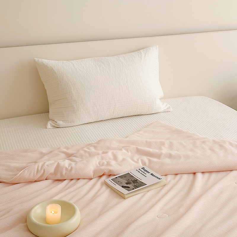 (总)珺柔家纺 2023新款针织华夫格夏被,白色,粉玉,金色,浅咖,水绿,雾霾蓝
