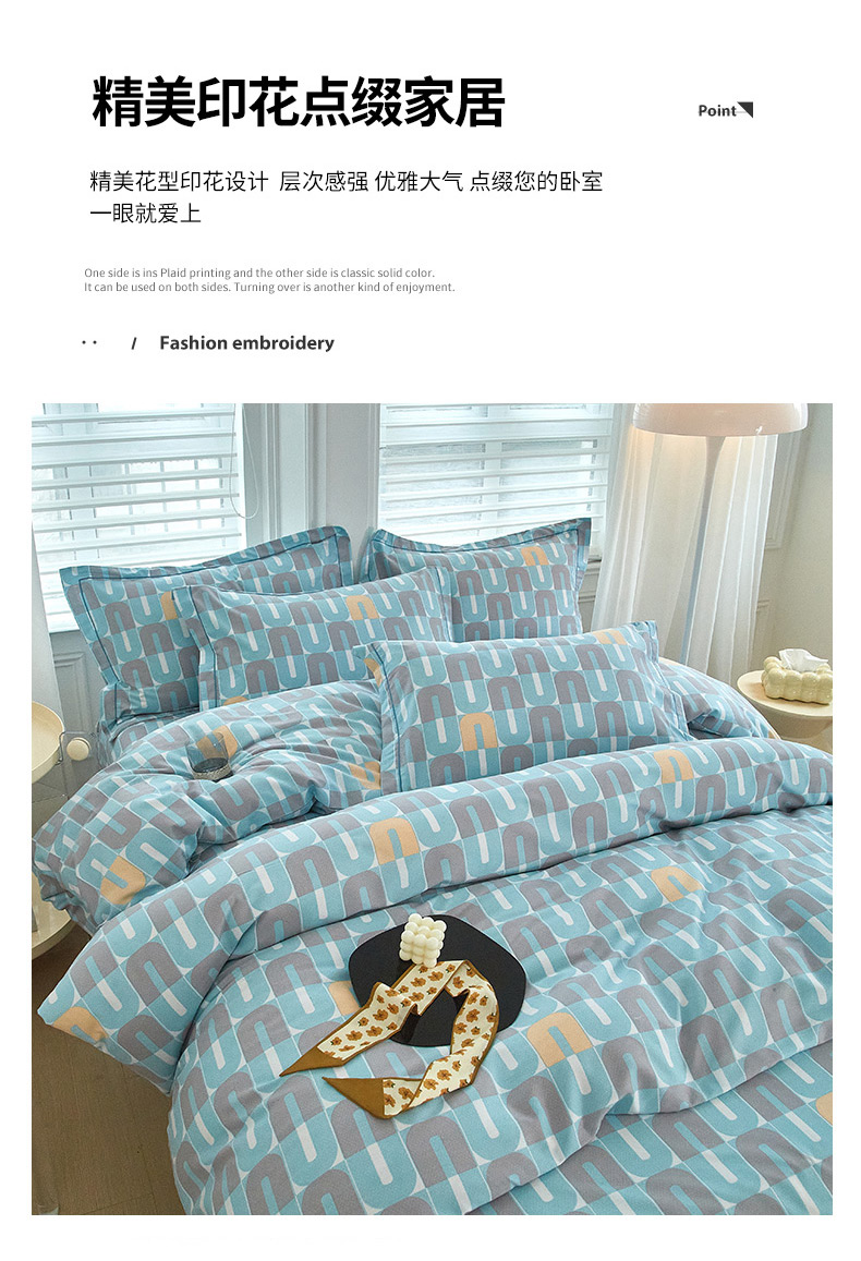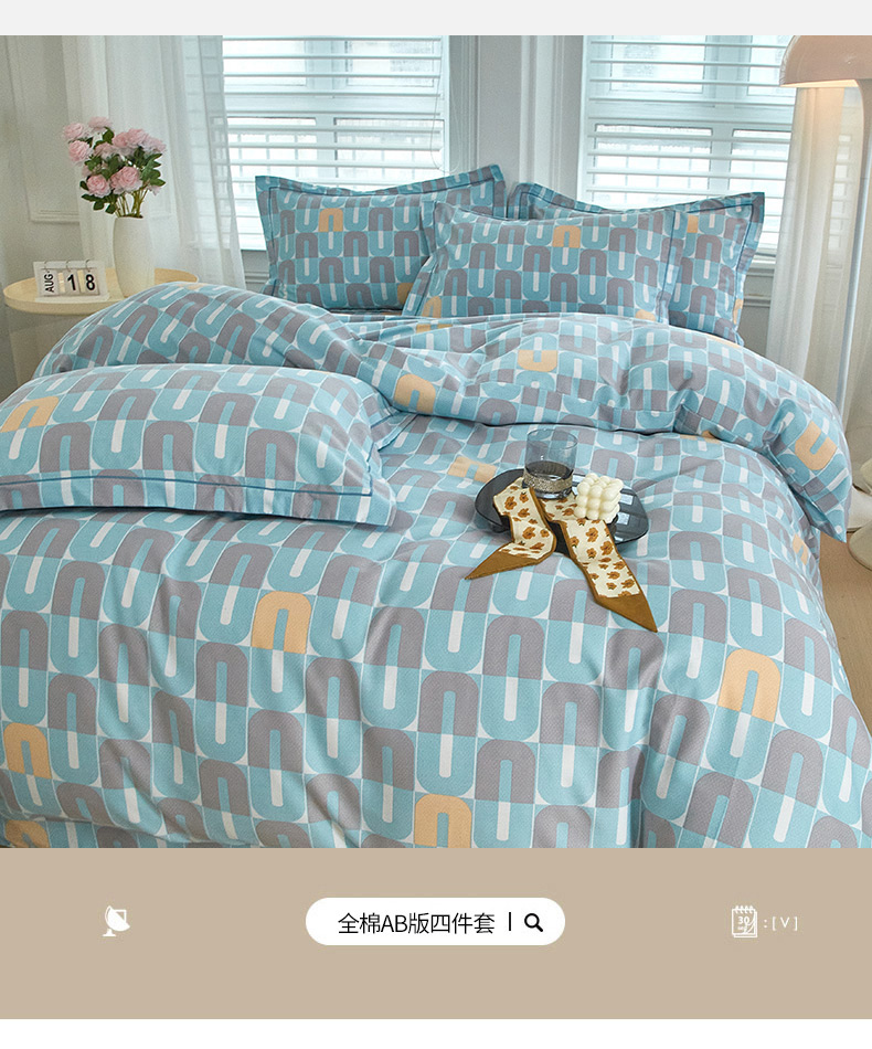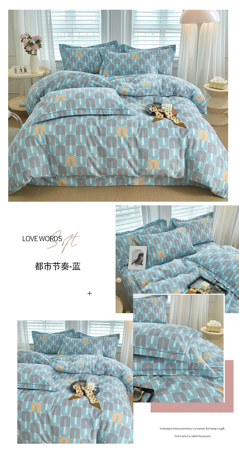 金纱玉纺家纺 2024新款加厚AB版四件套 都市节奏-蓝