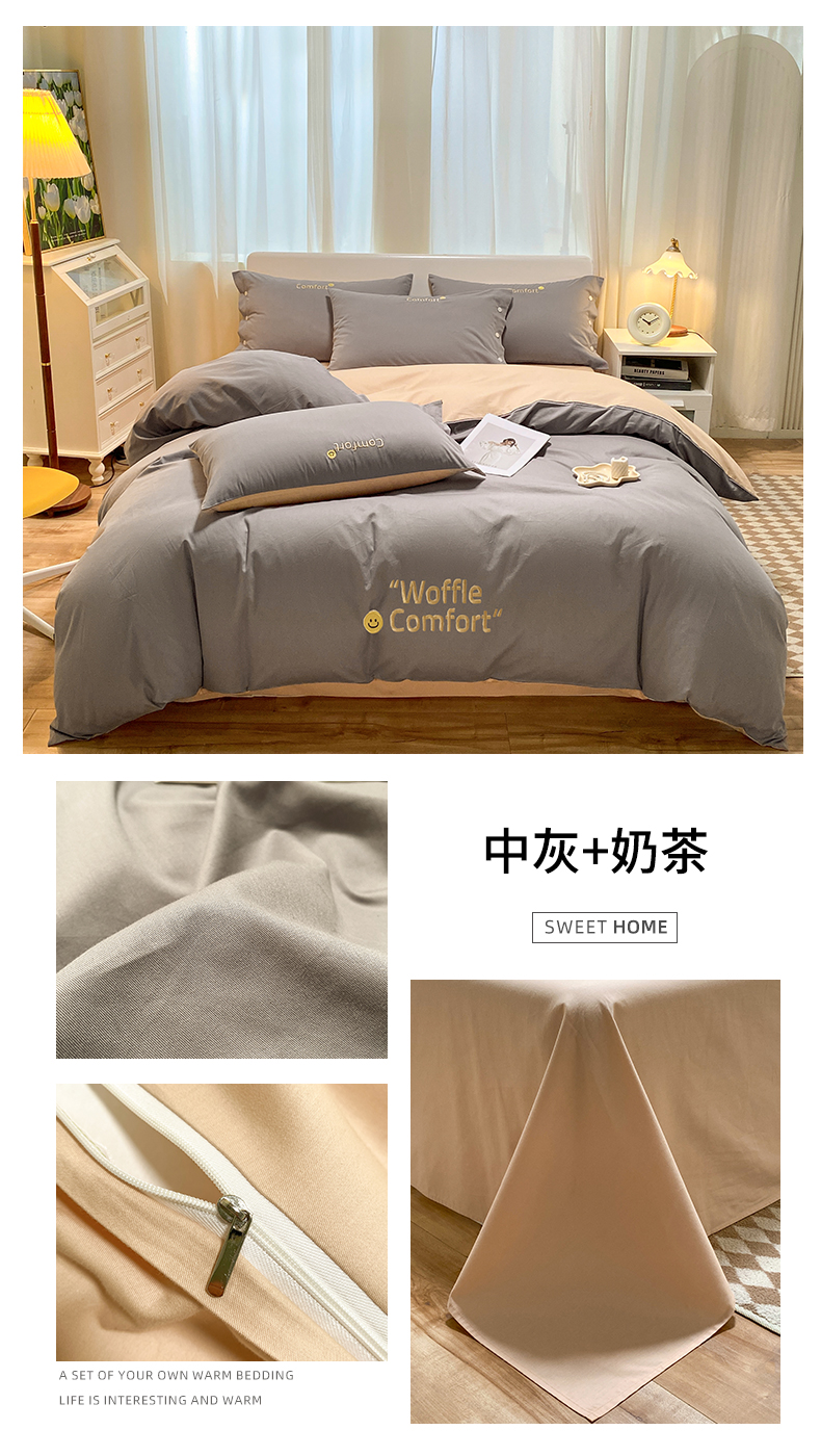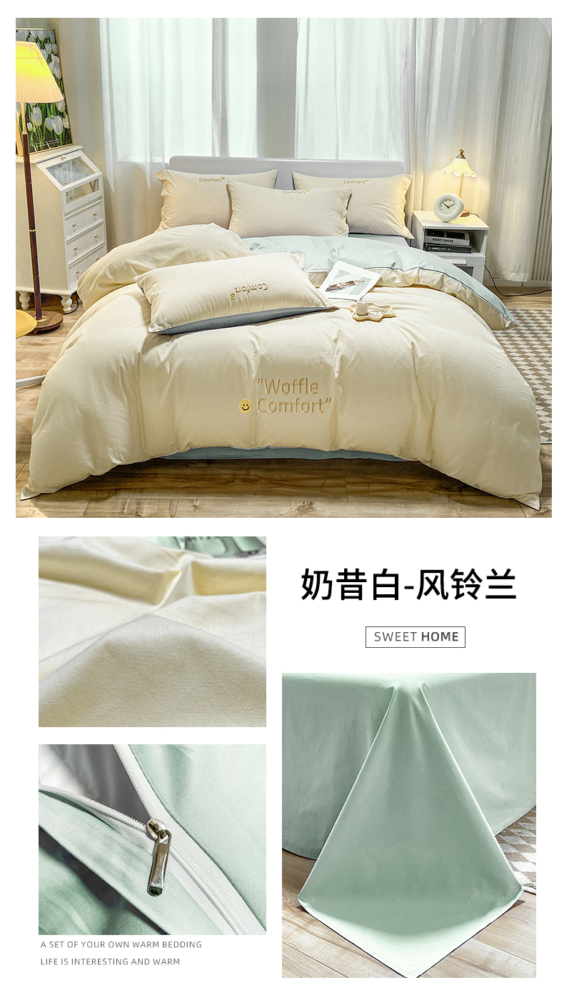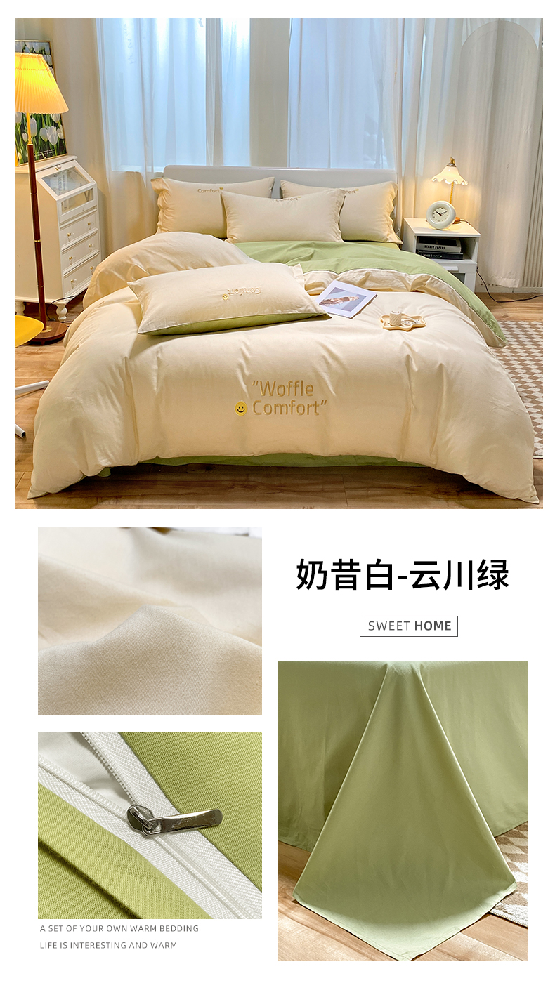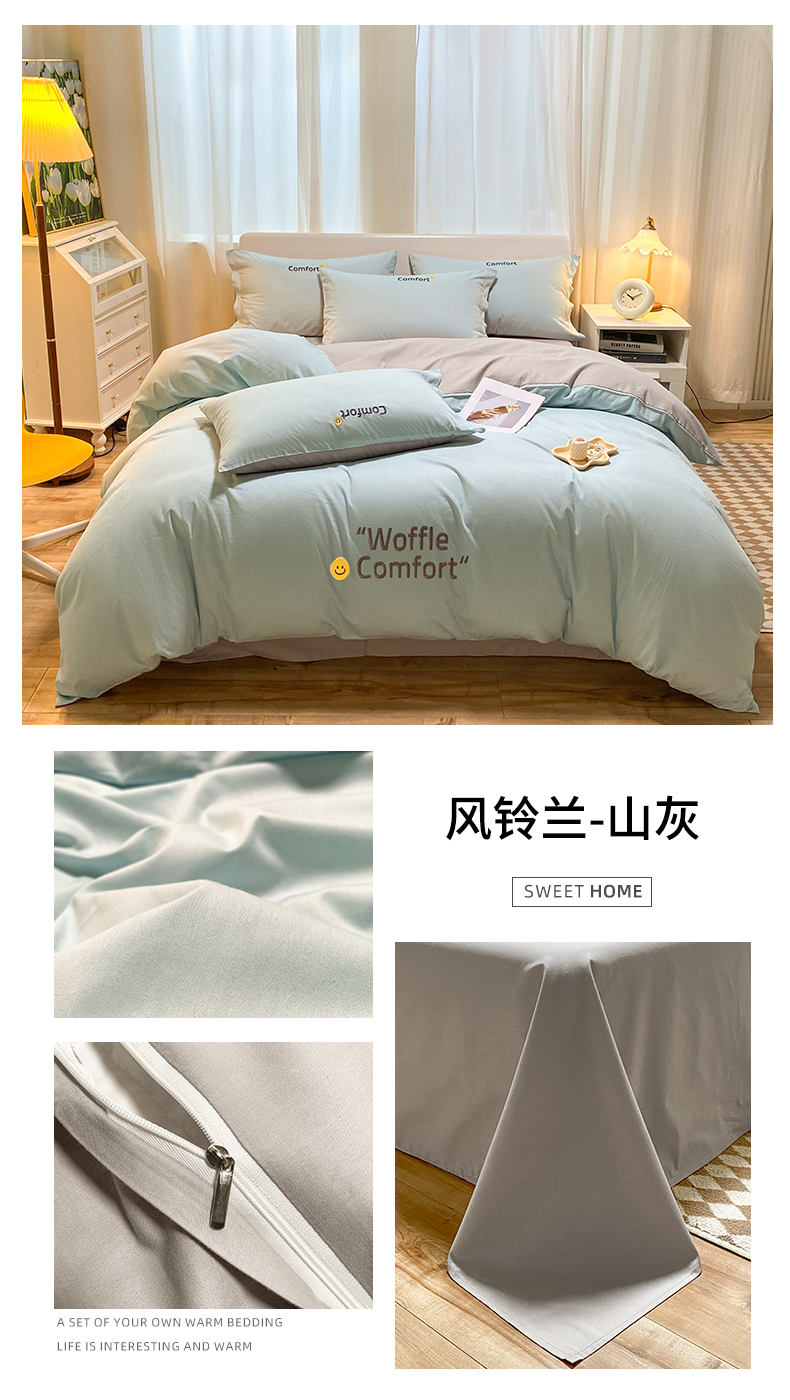 (总)床绮 2025新款水洗真丝双拼四件套系列,宾利蓝+冰川灰,冰川灰+烟灰,豆蔻粉+原野,风铃兰+山灰,猫眼绿+原野,抹茶绿+原野,奶茶色+中灰,水雾紫+豆蔻粉,雪芽 +风铃兰,雪芽+奶茶色,烟灰+冰川灰,原野+麦肤色