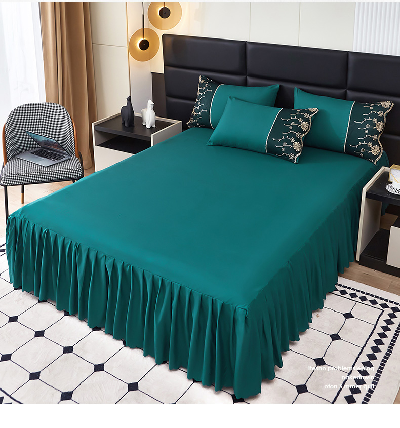 商品名称:莉莉安 2025年新款木耳花边亲肤磨毛床裙-蒂欧系列 蒂欧-海藻绿