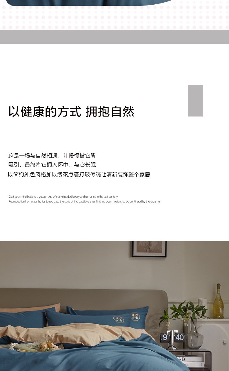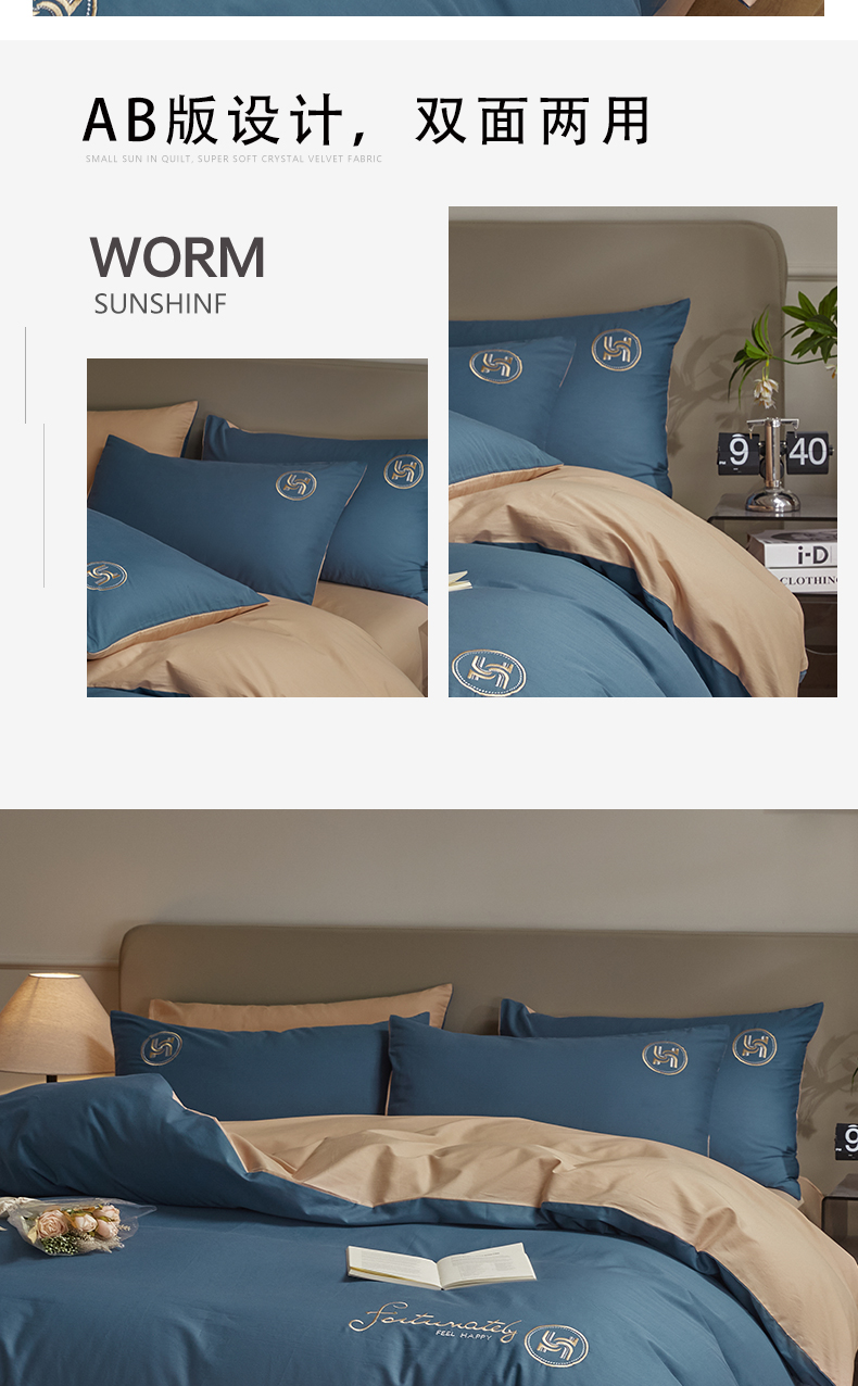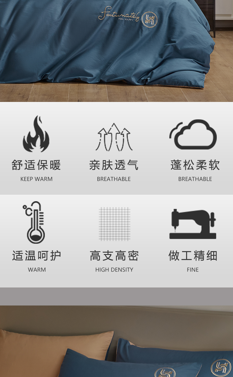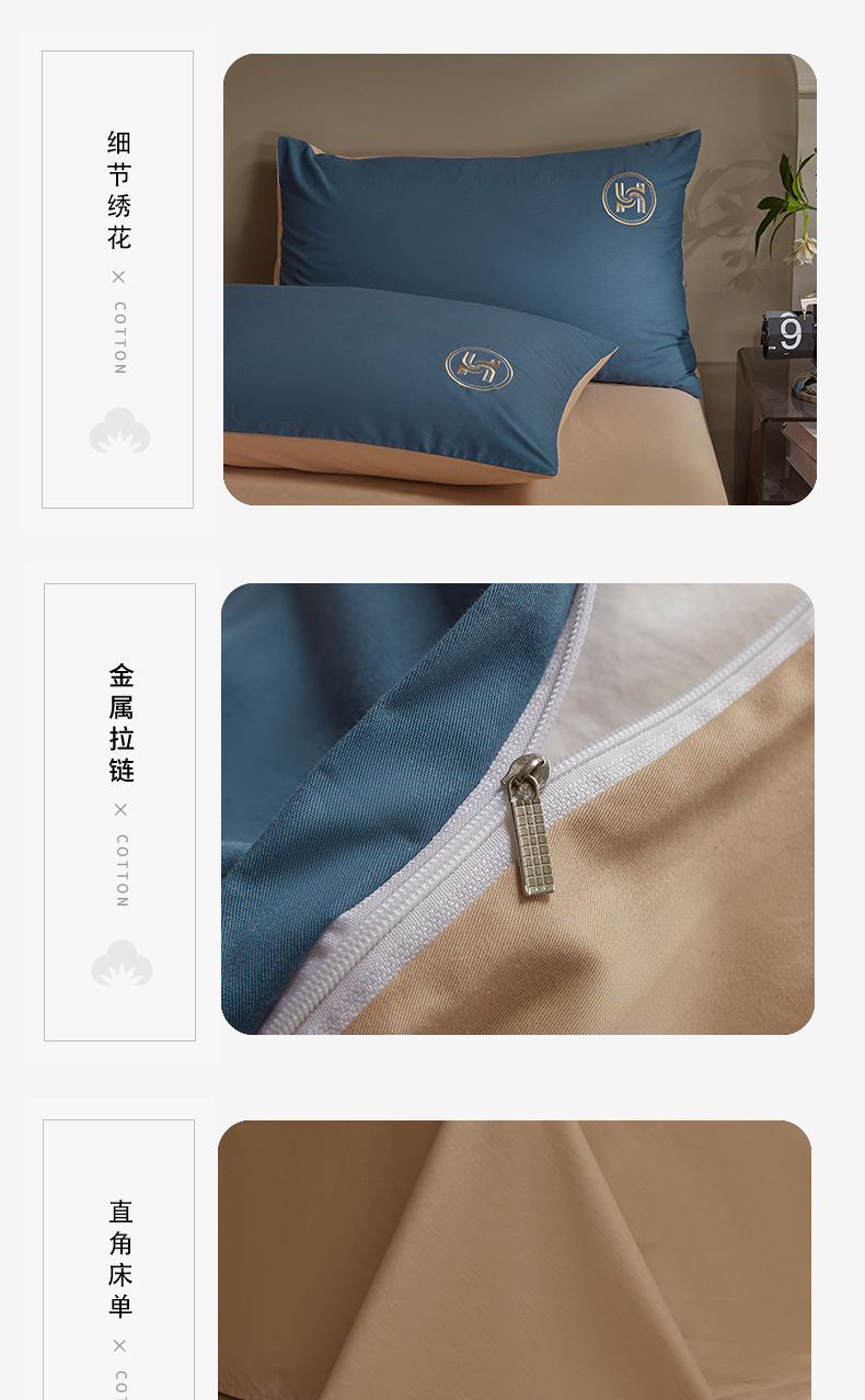 商品名称:梵克保罗 2024新款全棉轻奢纯色双拼刺绣四件套 深蓝色
