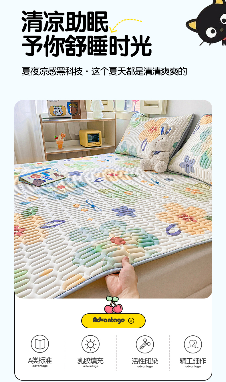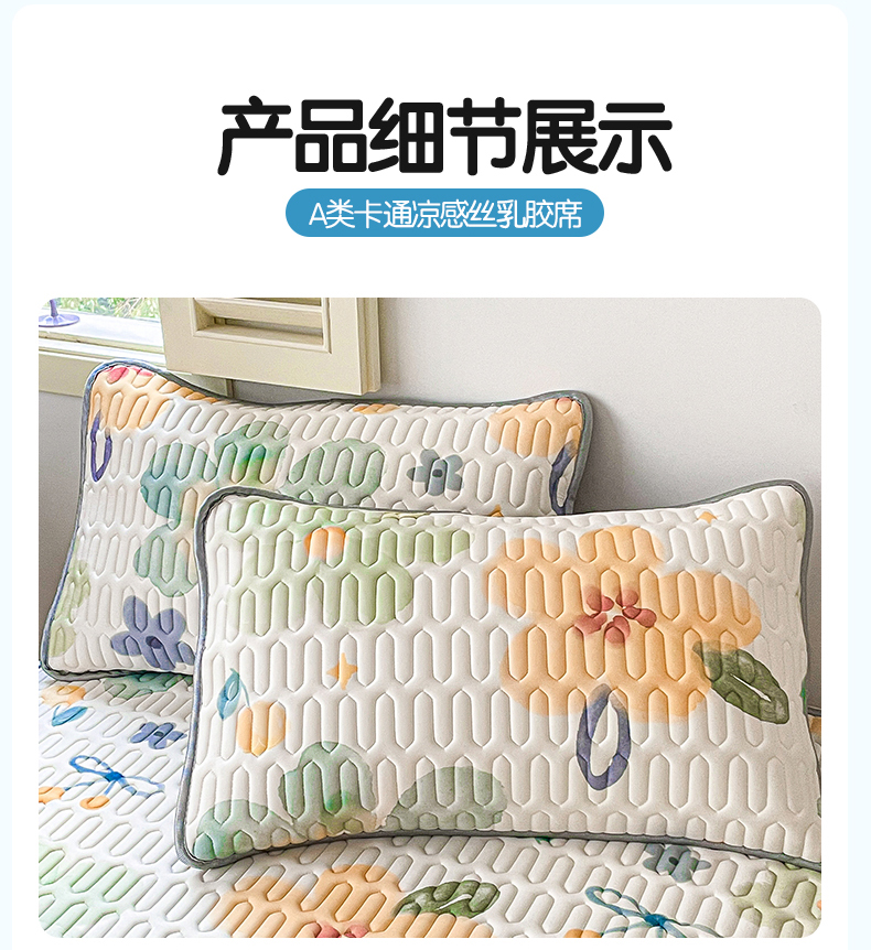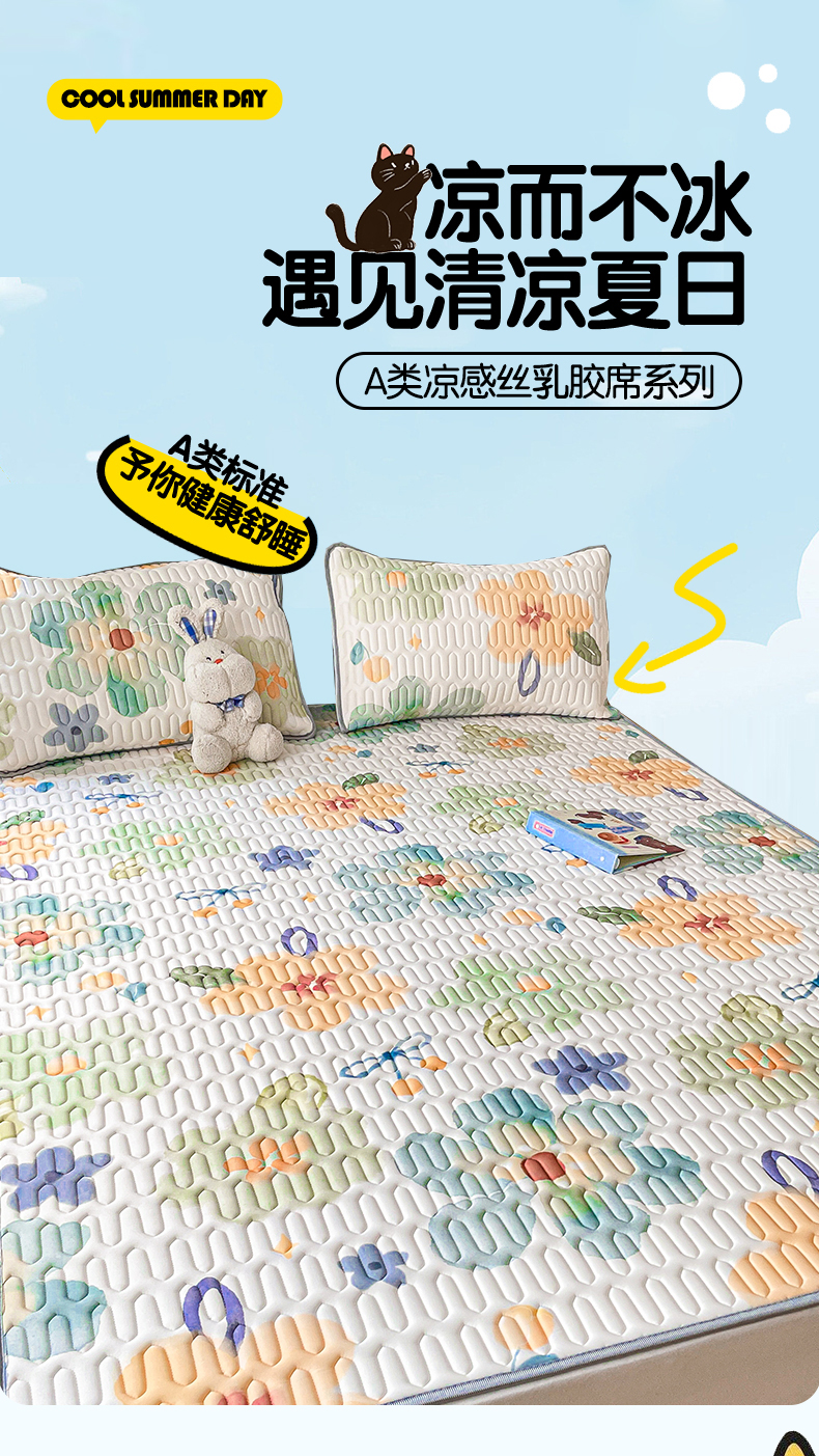 商品名称:布卢姆床垫 2025新款A类凉感丝数码印花小版乳胶凉席5mm 彩色花园