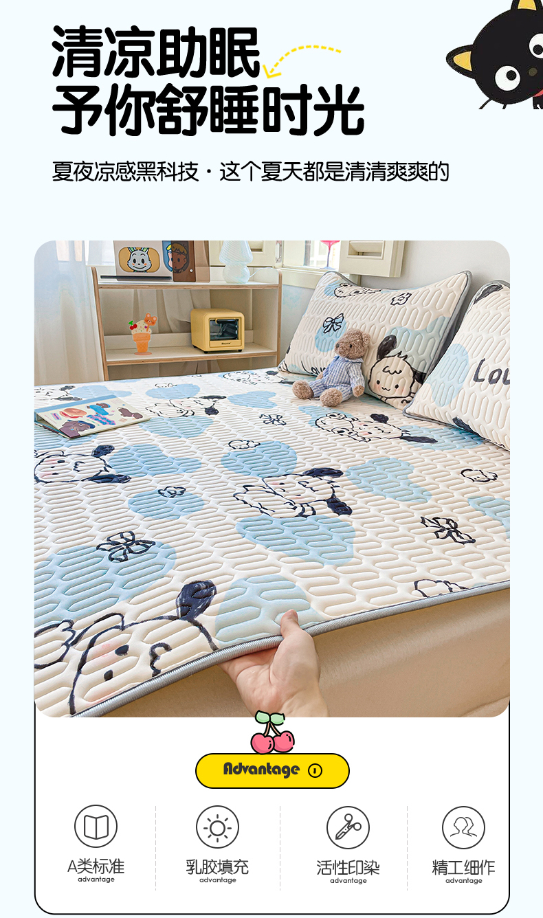 商品名称:布卢姆床垫 2025新款A类凉感丝数码印花小版乳胶凉席5mm 调皮小狗