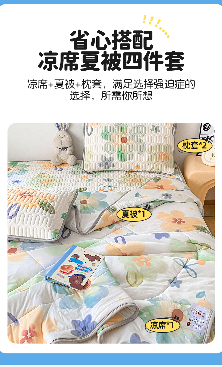 商品名称:(总)布卢姆床垫 2025新款A类凉感丝数码印花夏被凉席四件套