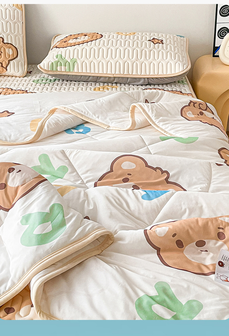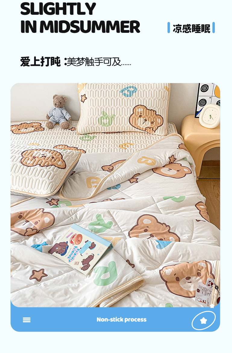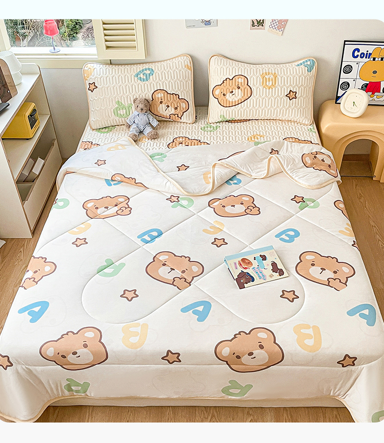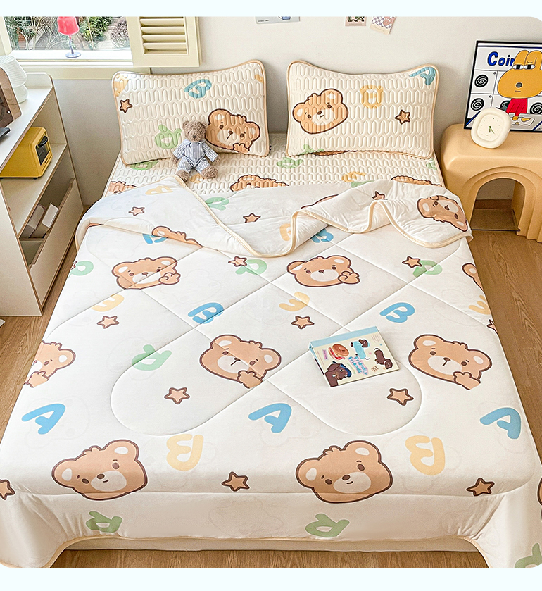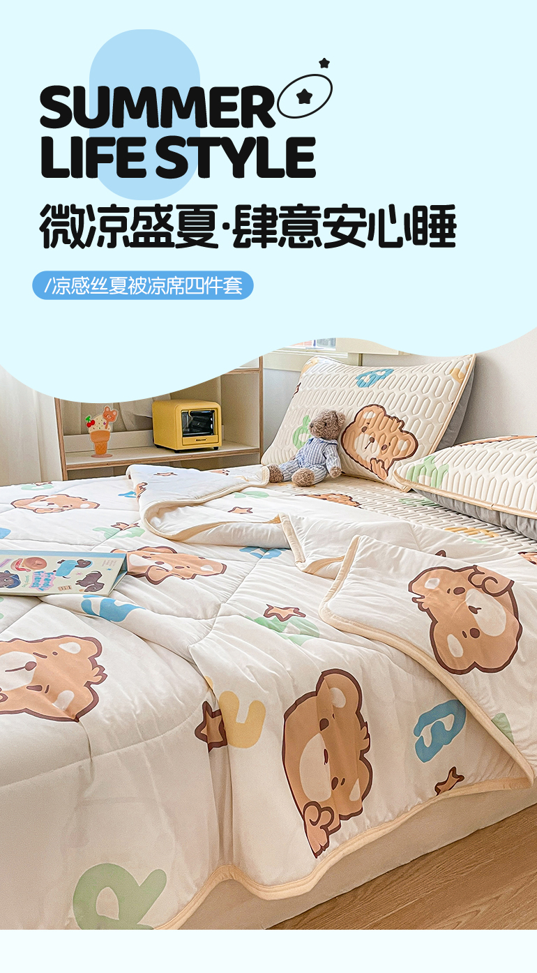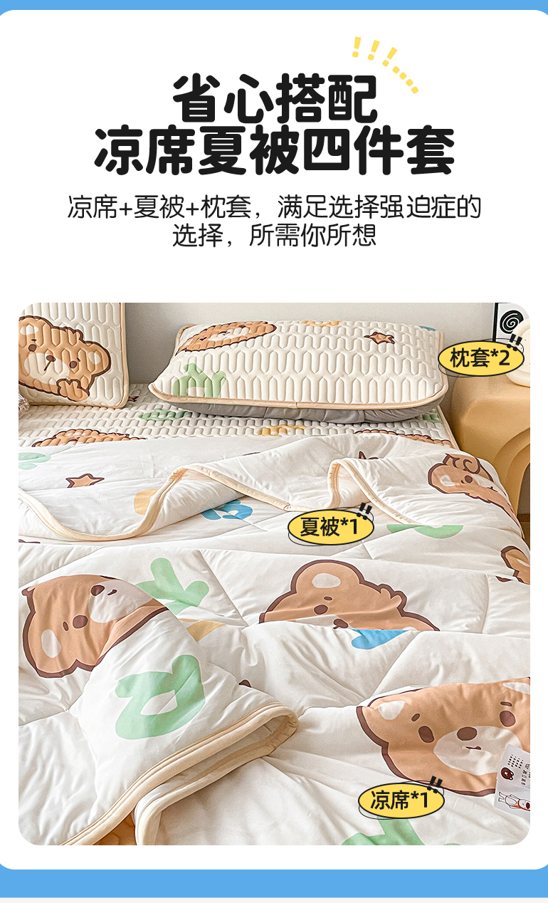 当前位置: 91家纺网 > 商品网购 > 床品套件 > 四件套 > 夏被四件套 > 布卢姆床垫 2025新款A类凉感丝数码印花夏被凉席四件套 字母小熊