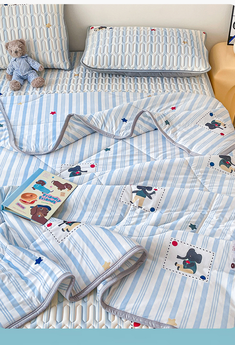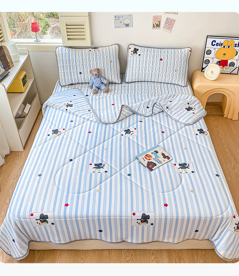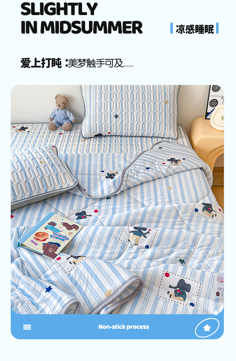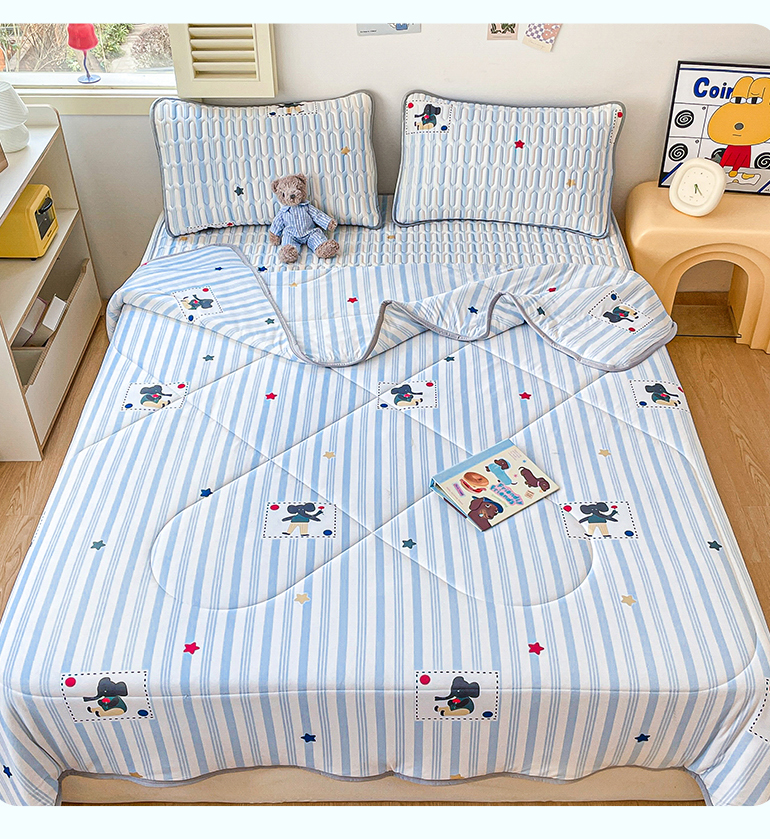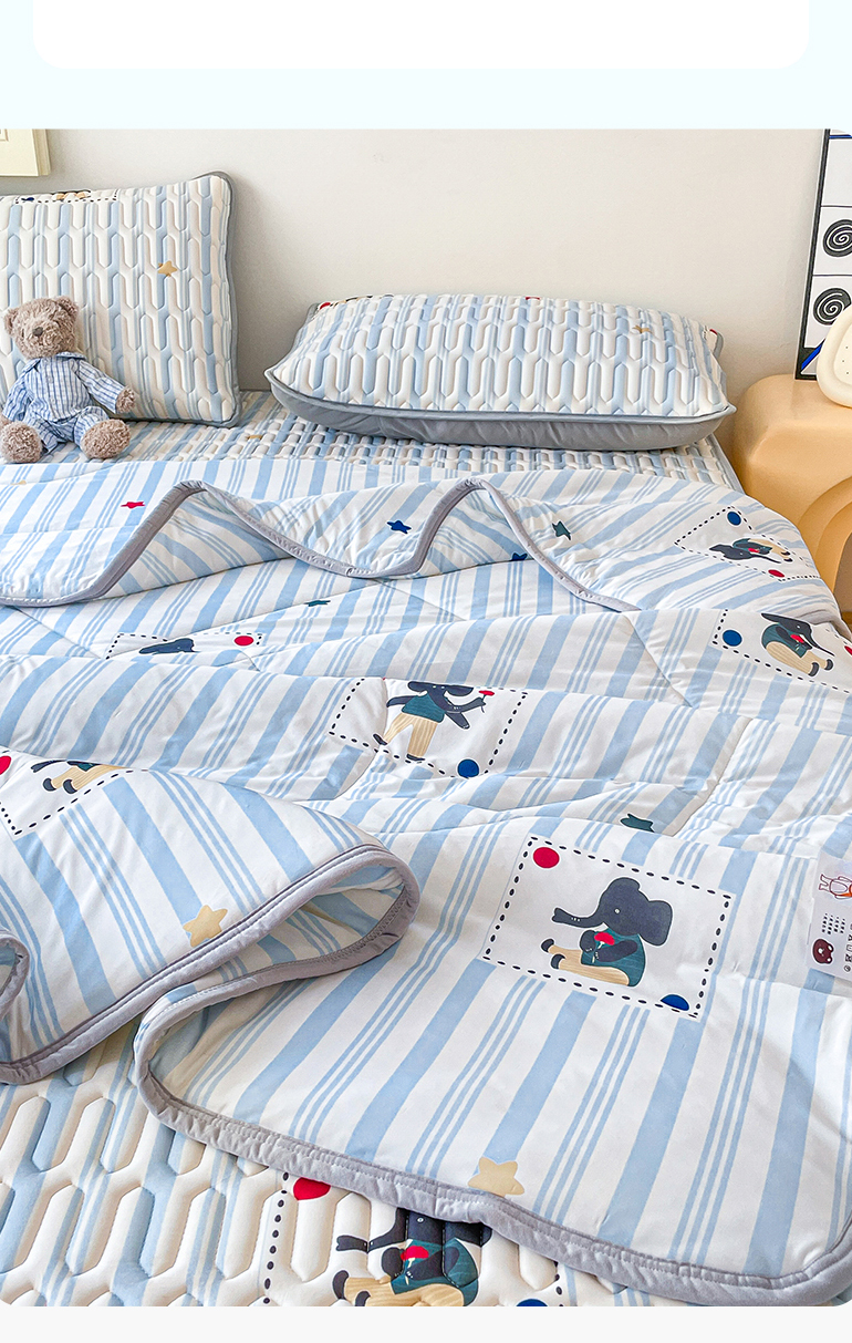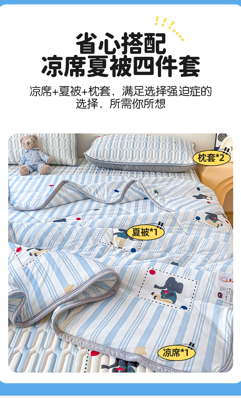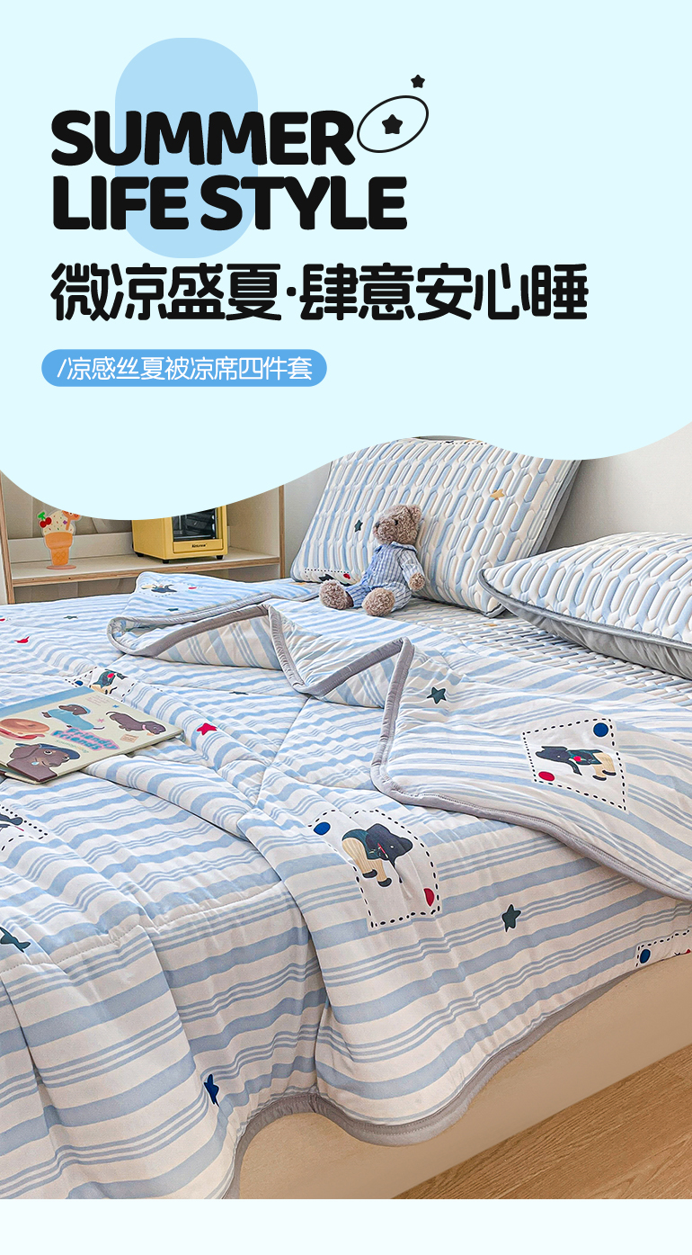 当前位置: 91家纺网 > 商品网购 > 床品套件 > 四件套 > 夏被四件套 > 布卢姆床垫 2025新款A类凉感丝数码印花夏被凉席四件套 条纹象
