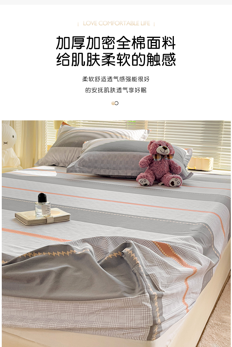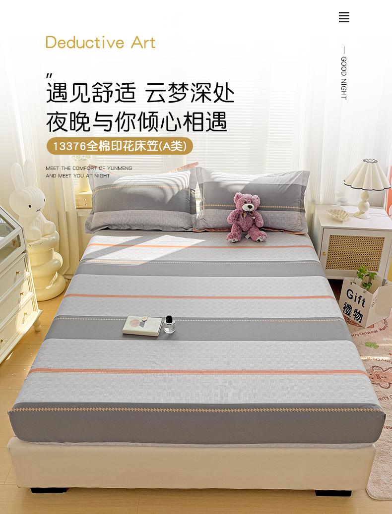 大柏树 2025新款全棉13376印花四件套系列(可定制)-单床笠 罗伊