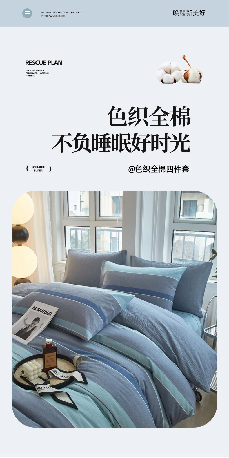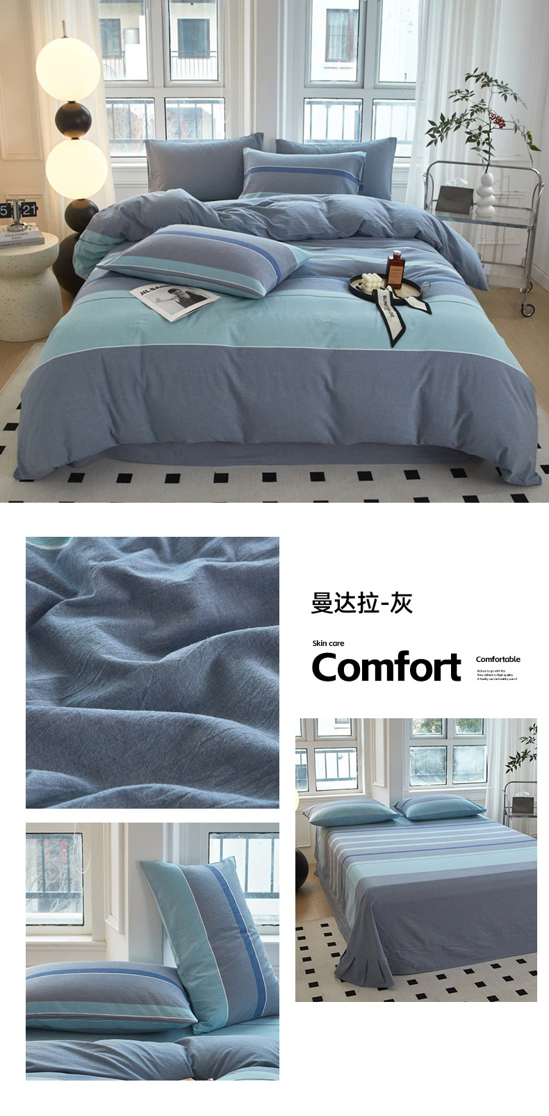 金纱玉纺家纺 2024新款色织全棉水洗棉四件套 曼达拉-灰