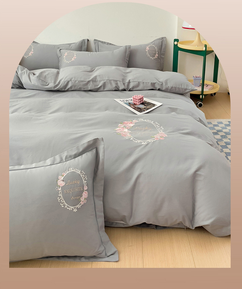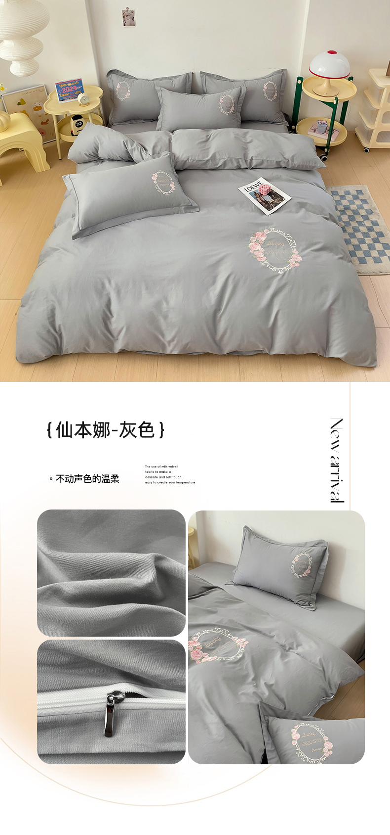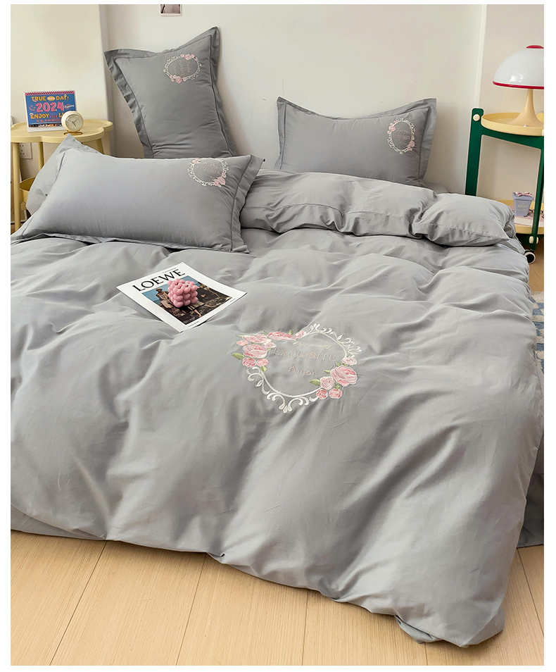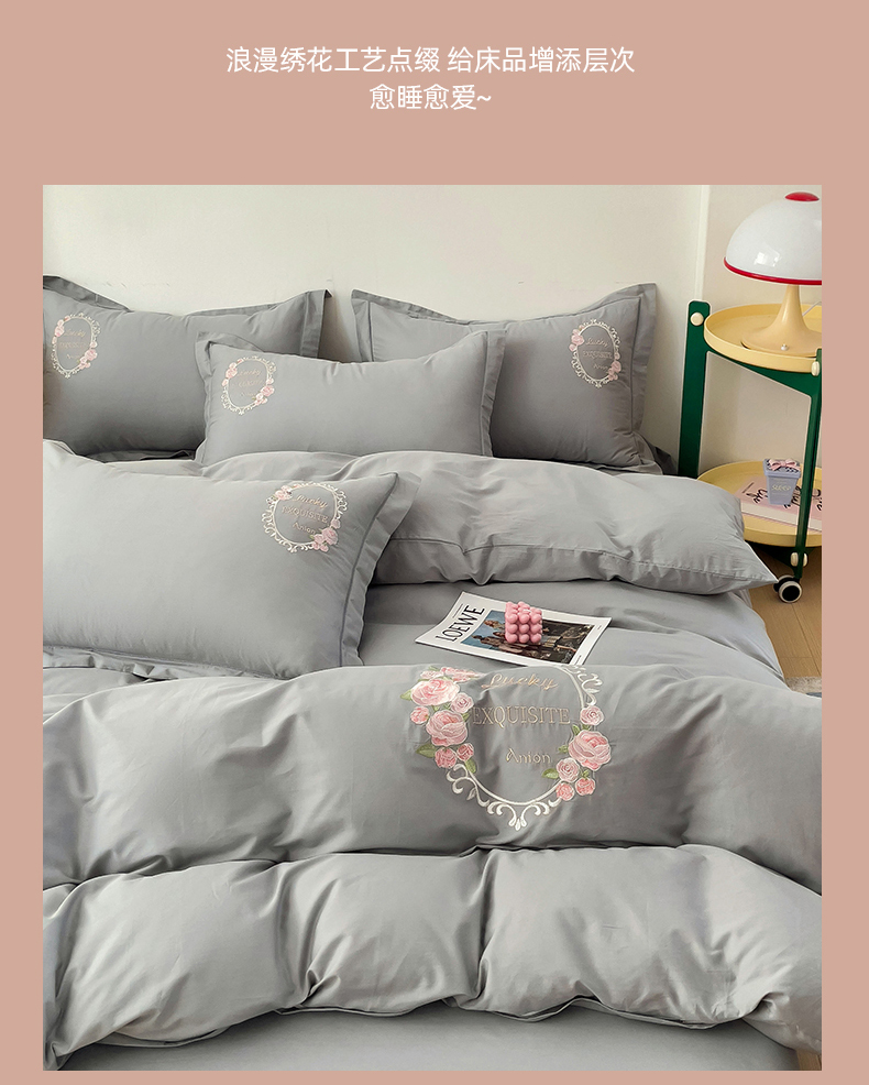 云锦家居 2024春夏新品13372全棉刺绣绣花四件套-仙本娜 仙本娜-灰色