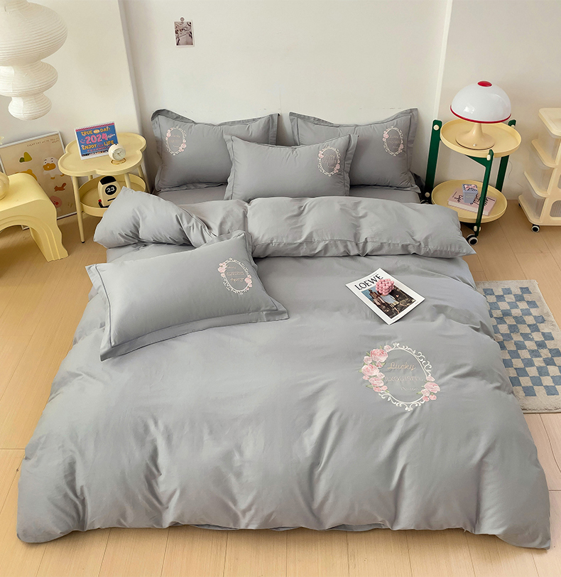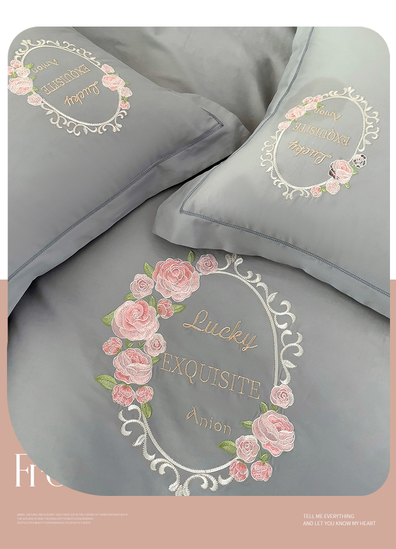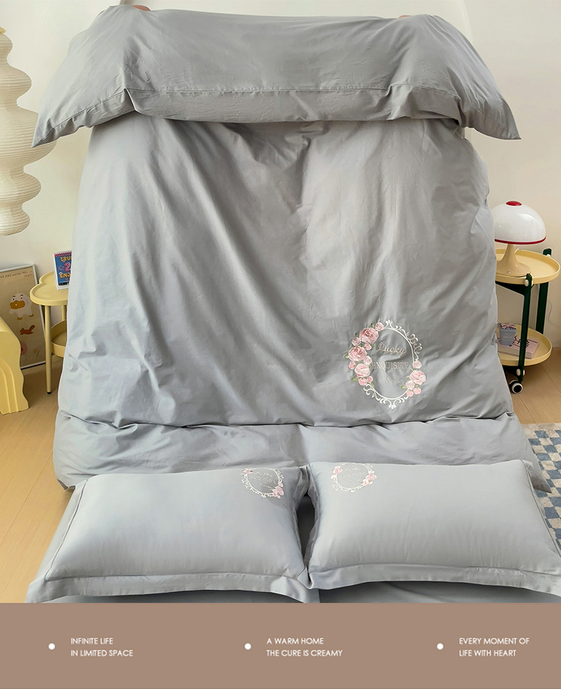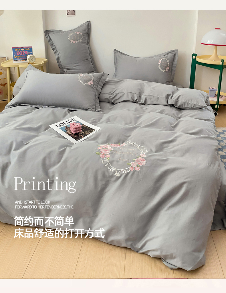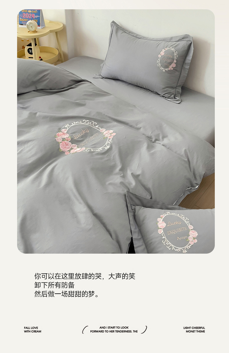 云锦家居 2024春夏新品13372全棉刺绣绣花四件套-仙本娜 仙本娜-灰色