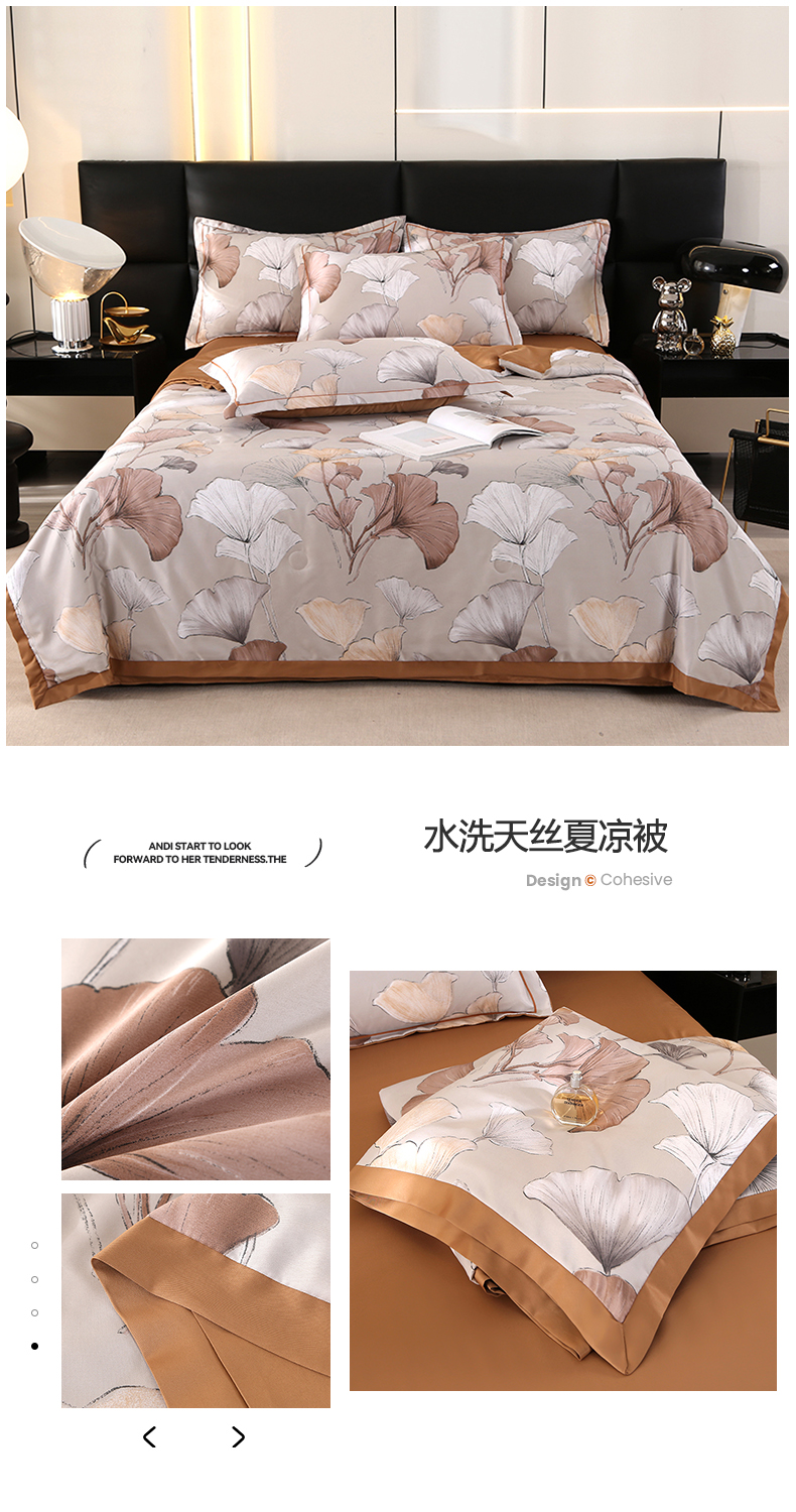 商品名称:梦莱斯 2024新款拼角宽边水洗天丝夏被四件套 盛夏-可可棕