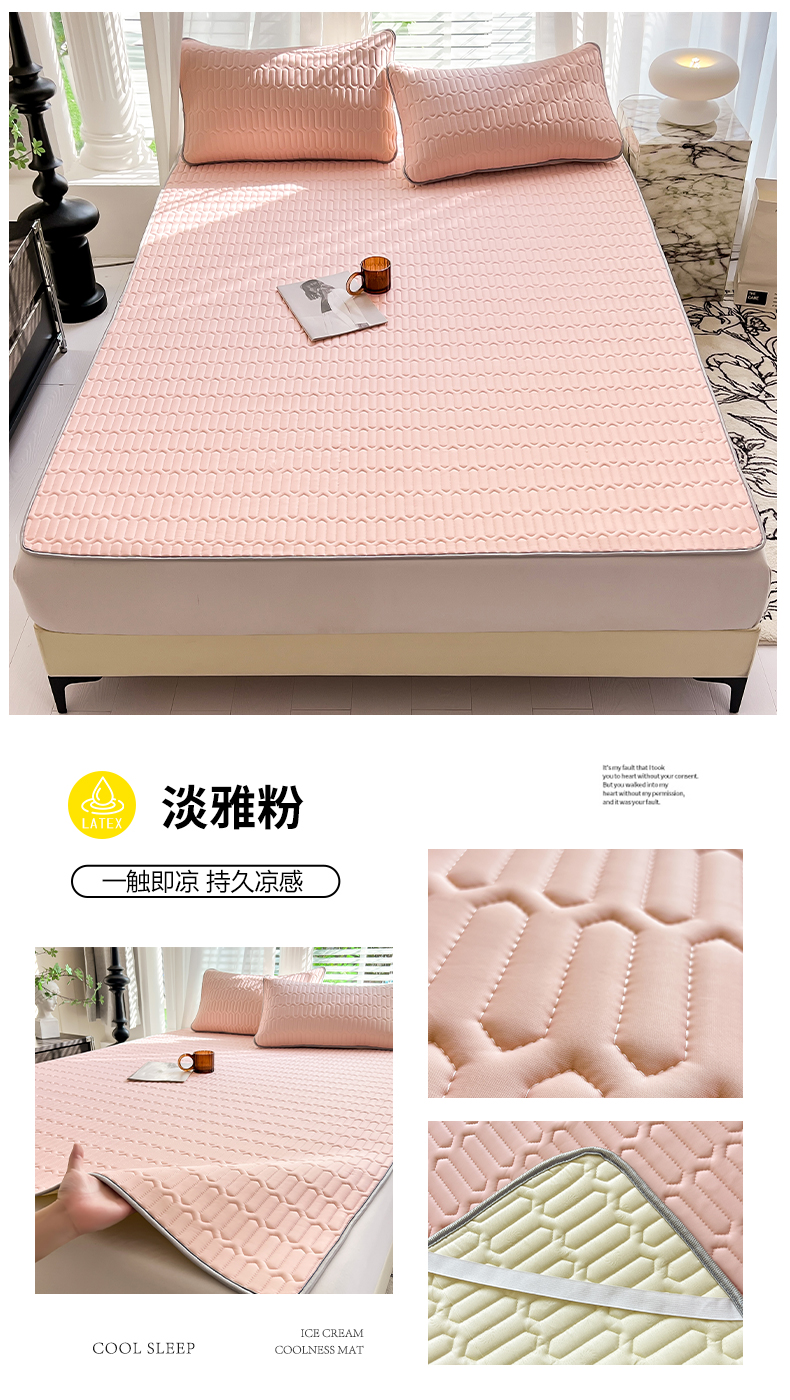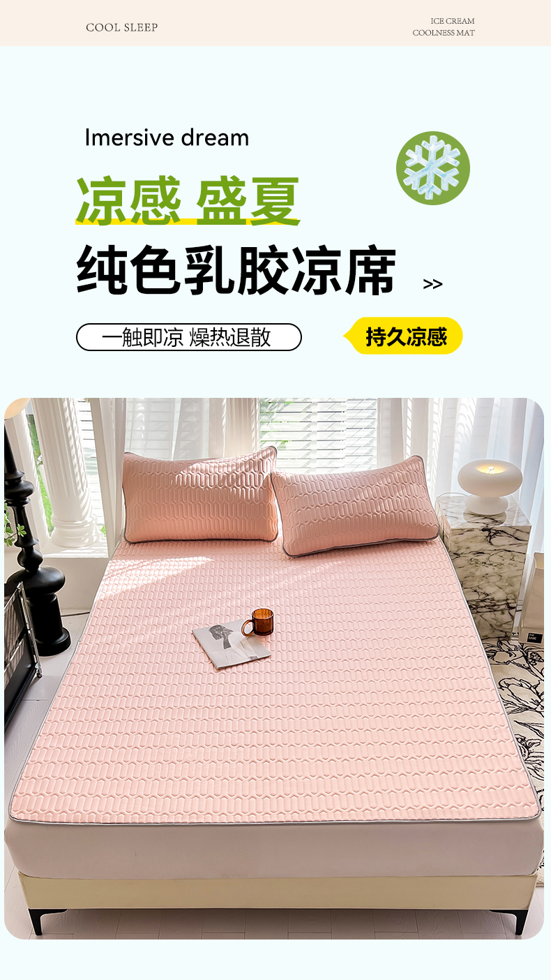 商品名称:佳梦达 2025新款0.4厚度纯色乳胶凉席 淡雅粉