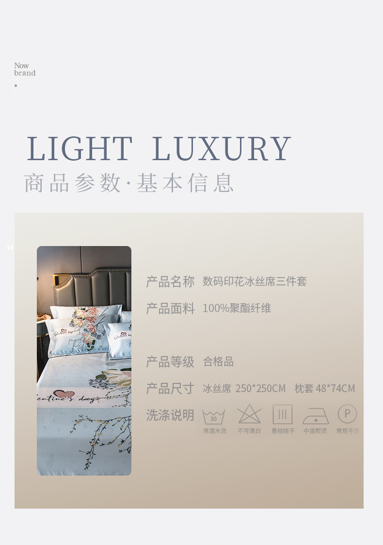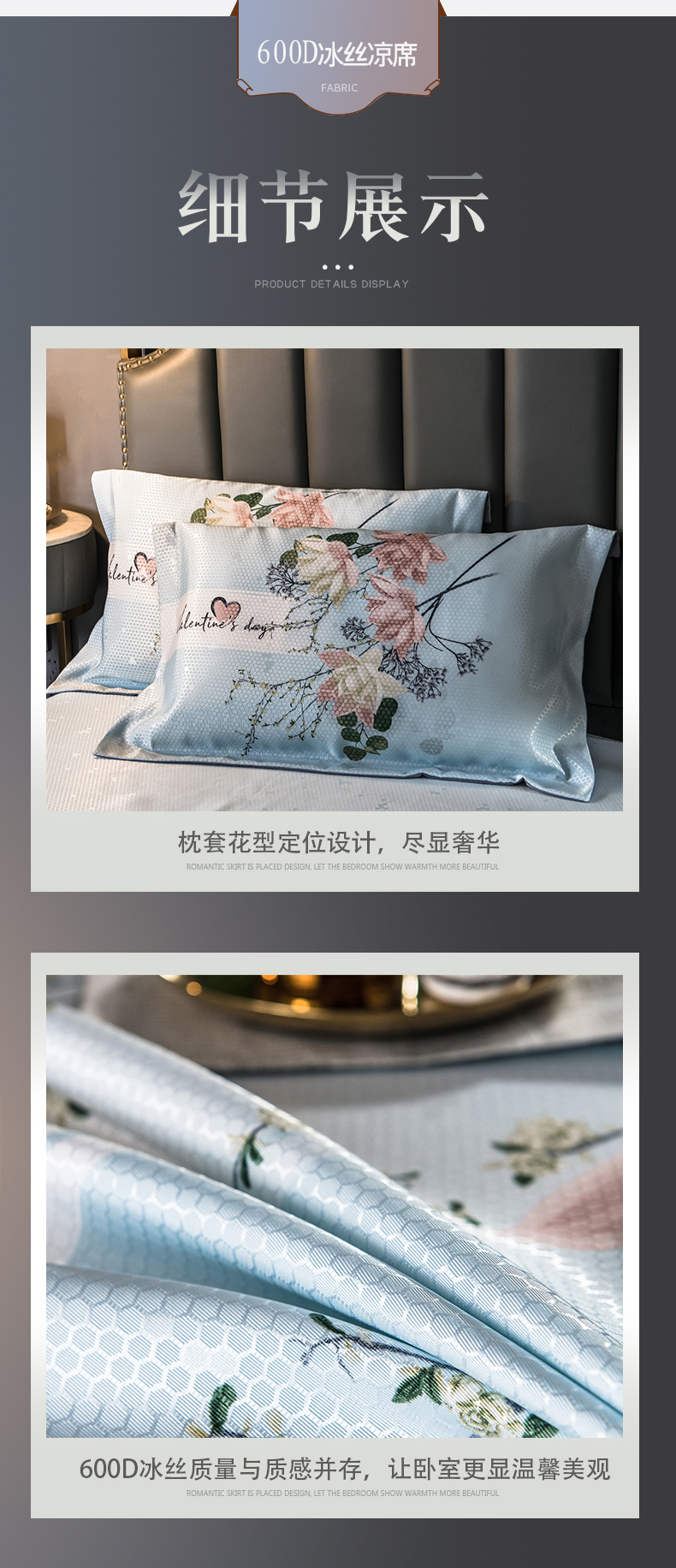 商品名称:其奥家纺 2025新款900d窝蜂冰丝凉席三件套 香草百合