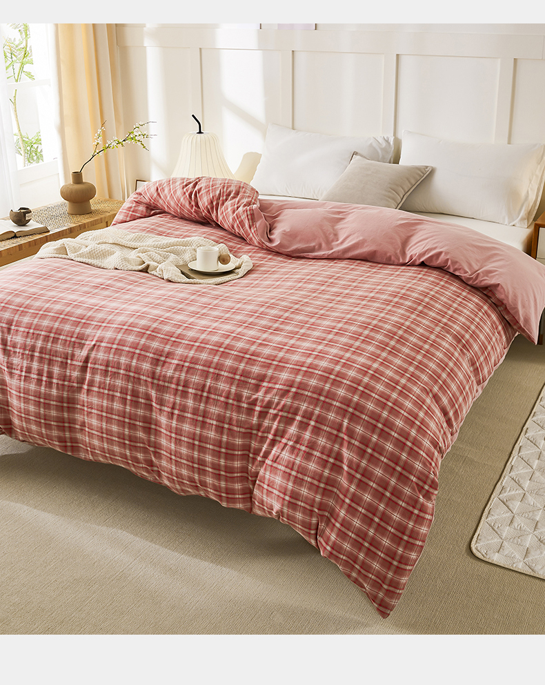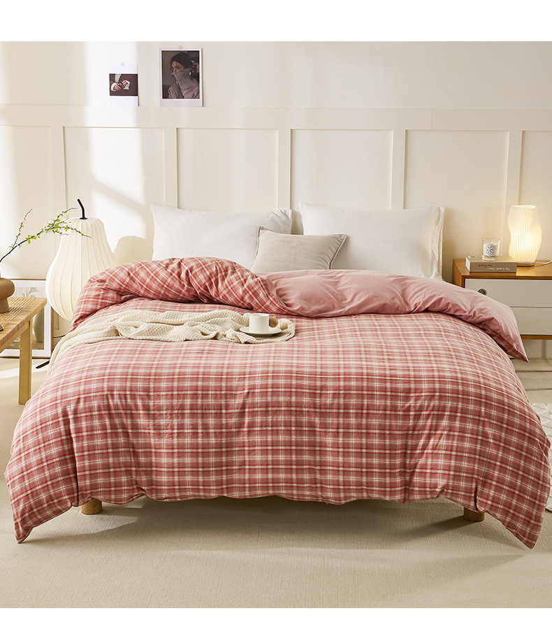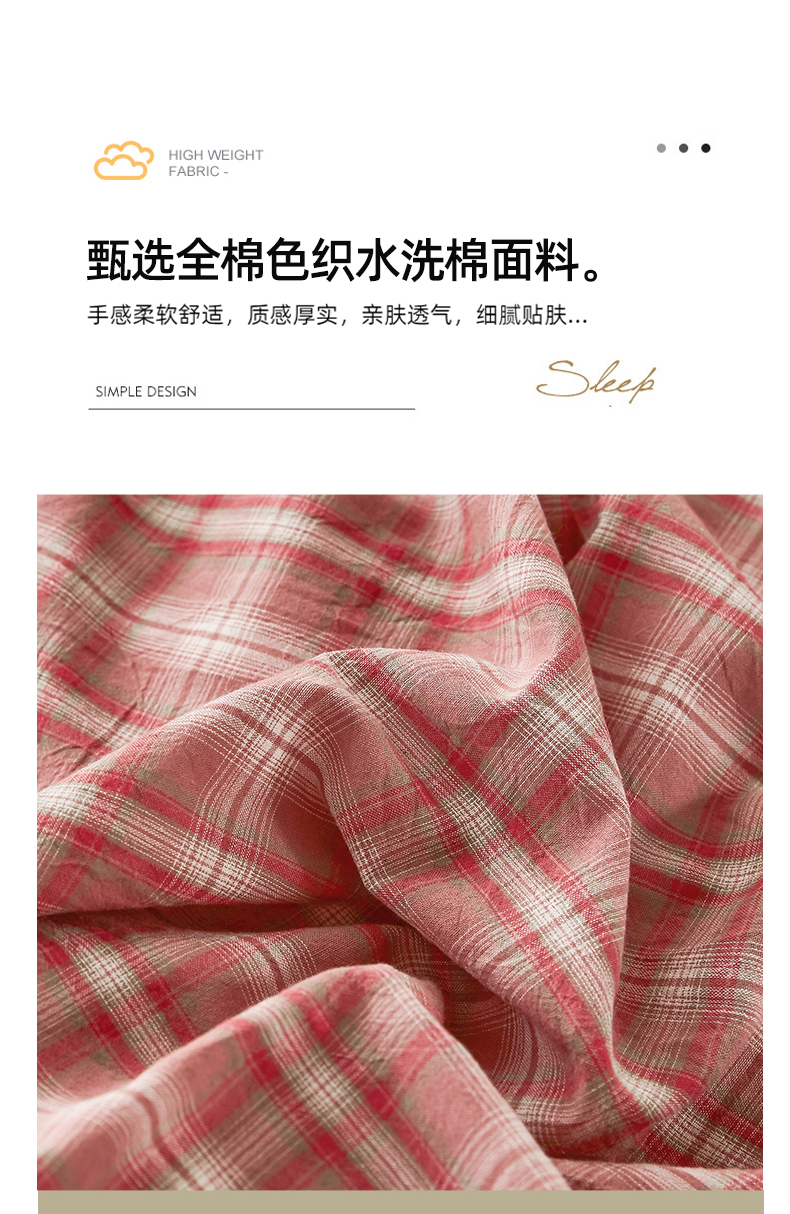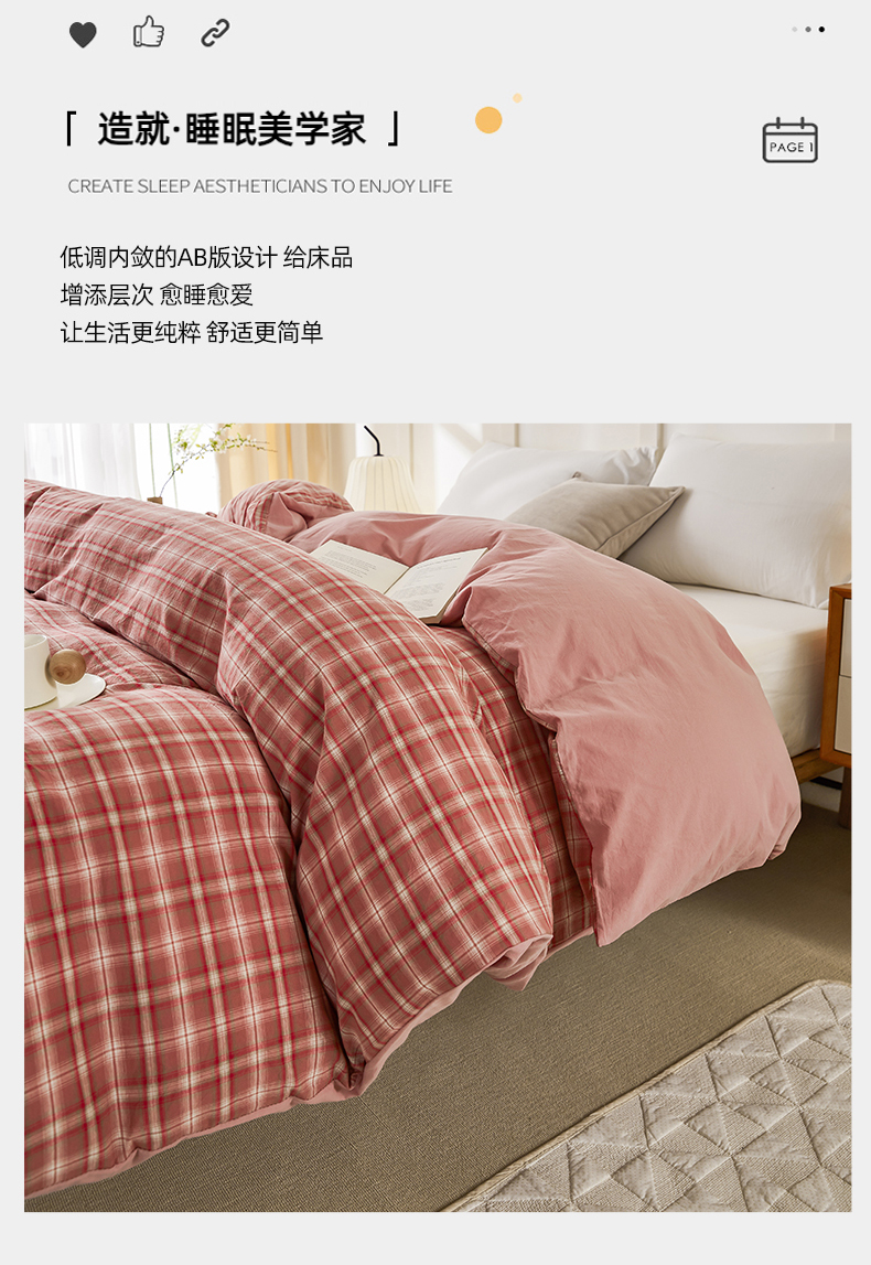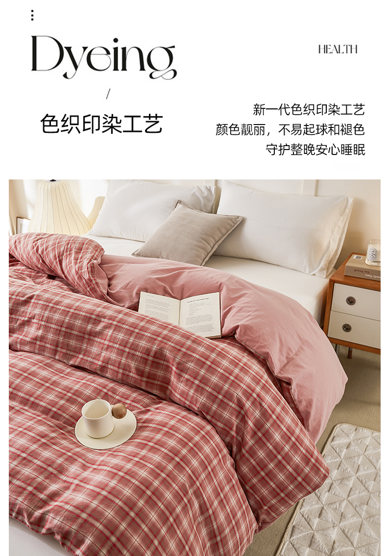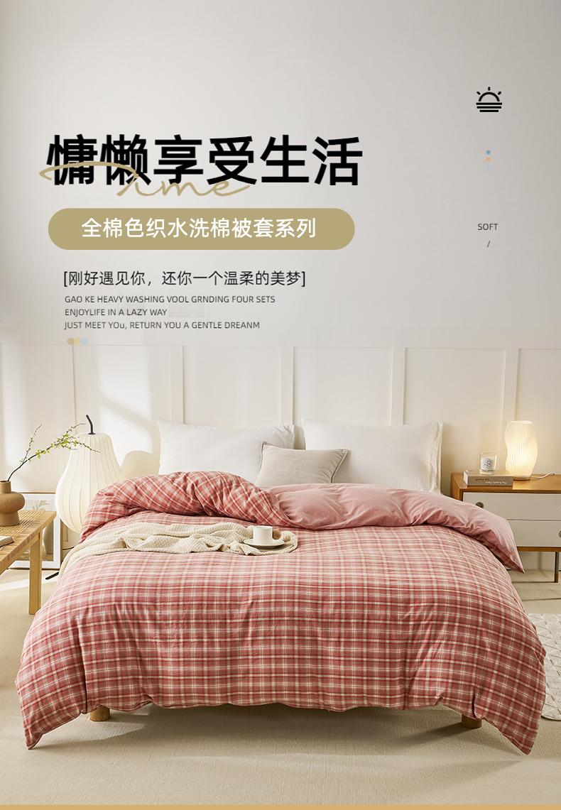 凡客家居 2024新款全棉色织水洗棉被套学生宿舍 暖栀—红