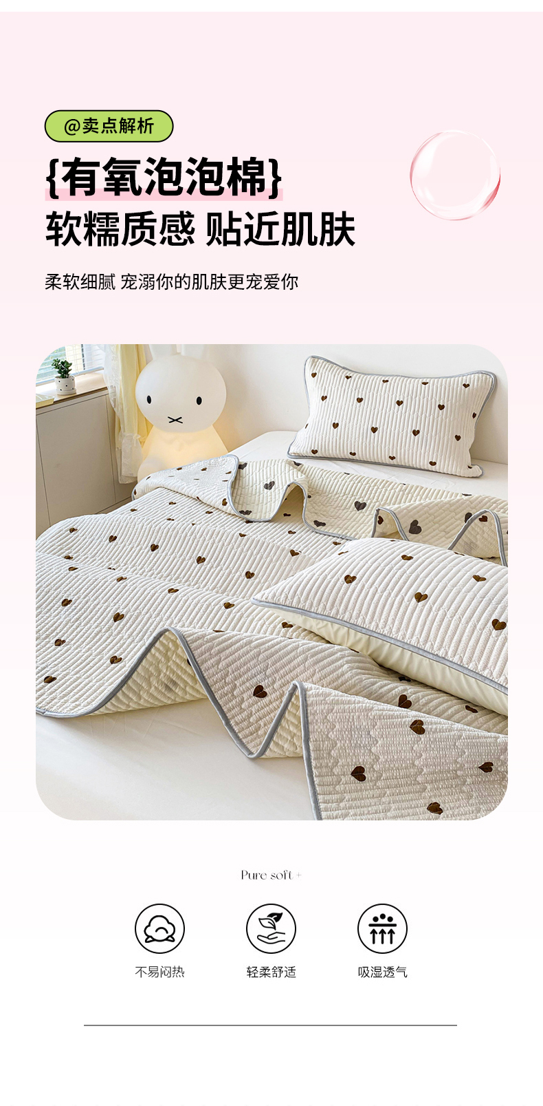 缦卡琳 2024新款有氧泡泡棉床盖系列 咖色爱心