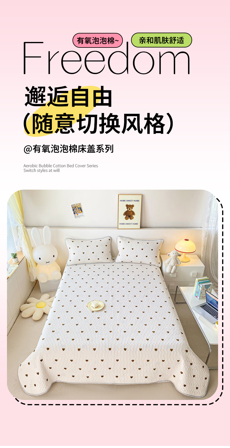 • 91家纺网 家纺一手货源 找家纺 缦卡琳 2024新款有氧泡泡棉床盖系列 咖色爱心