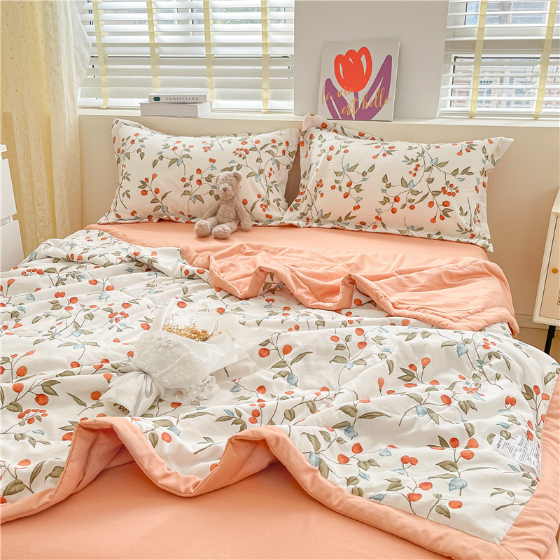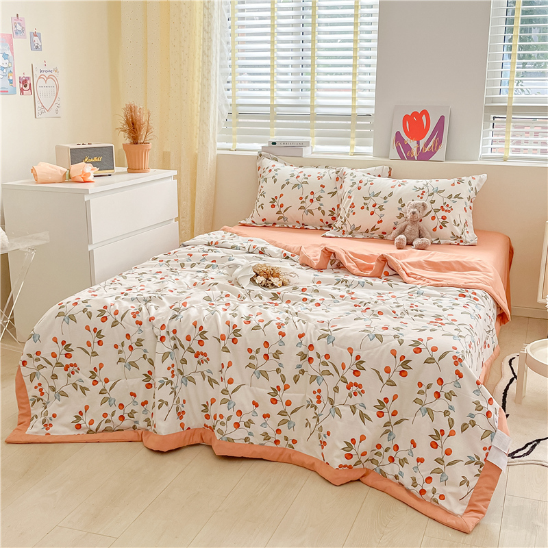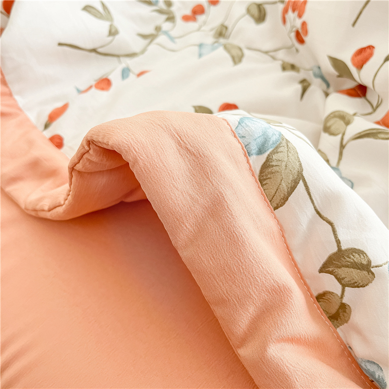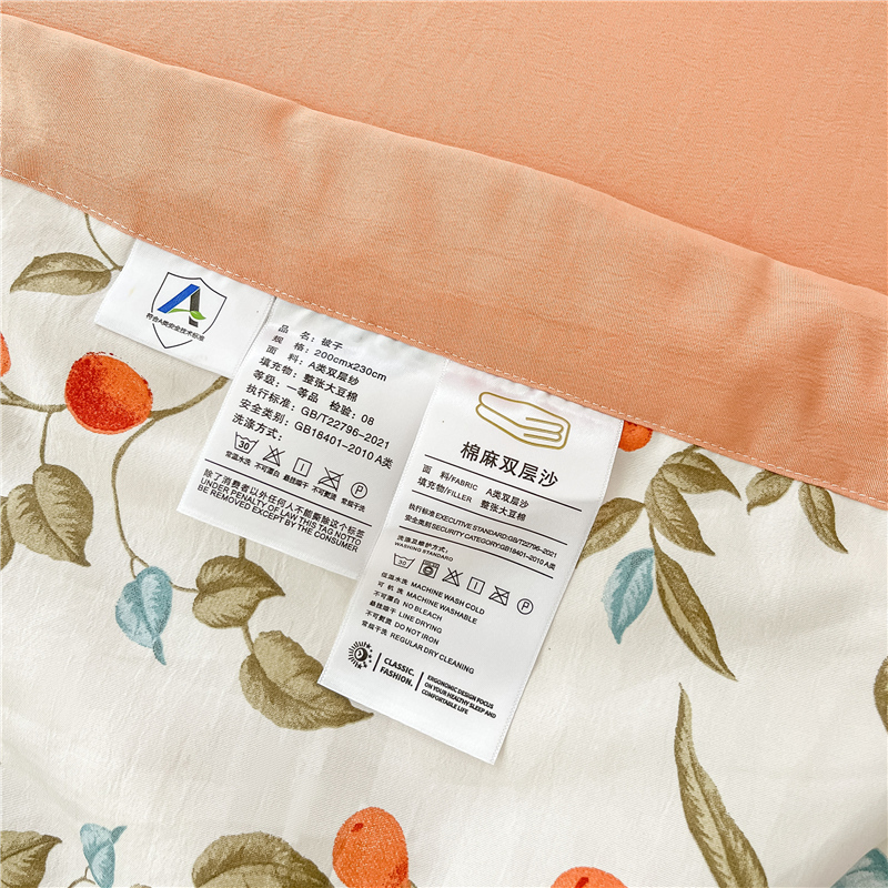 • 91家纺网 家纺一手货源 找家纺 梵克保罗 2024新款春夏水洗棉麻双层纱夏被四件套 枇杷树