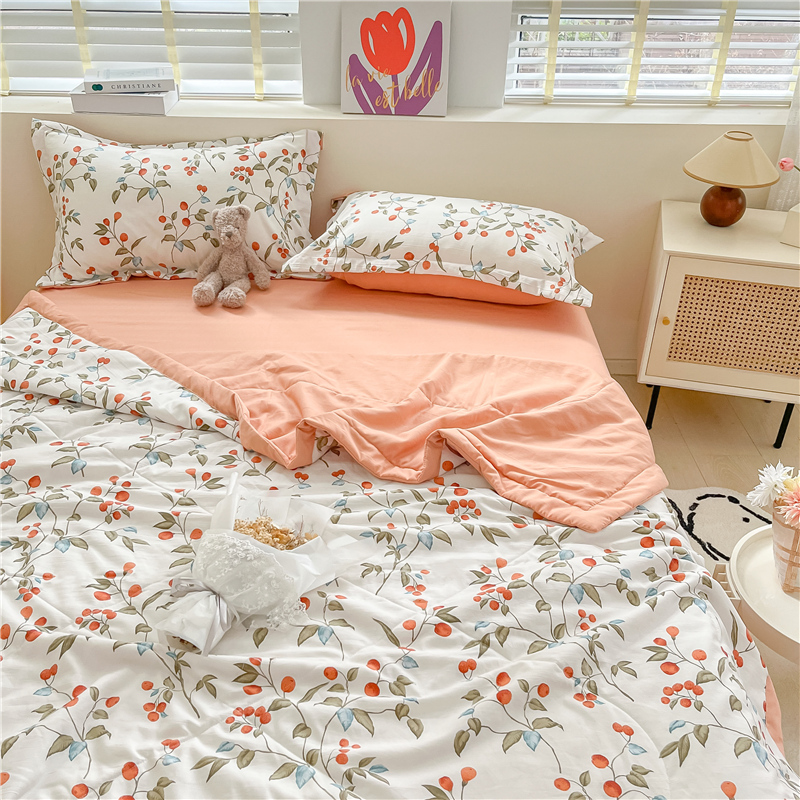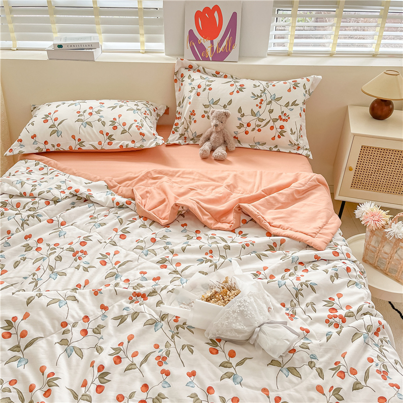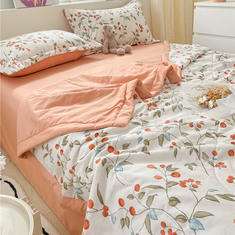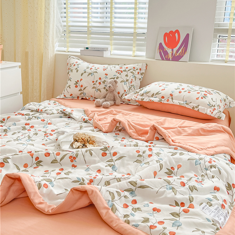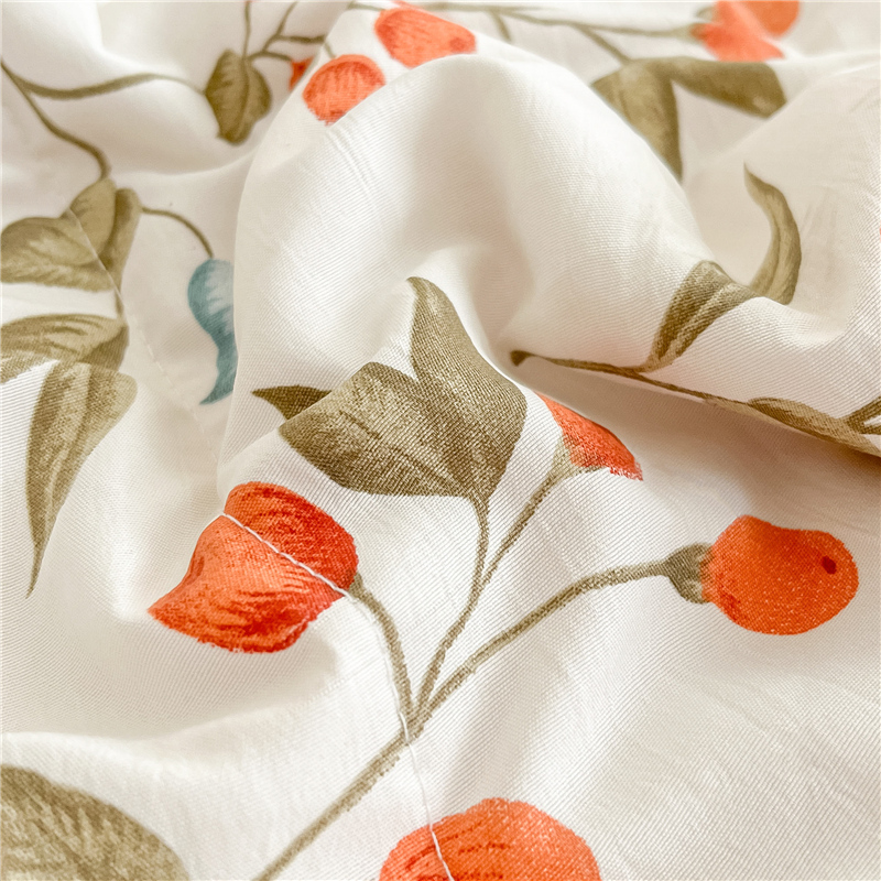 梵克保罗 2024新款春夏水洗棉麻双层纱夏被四件套 枇杷树