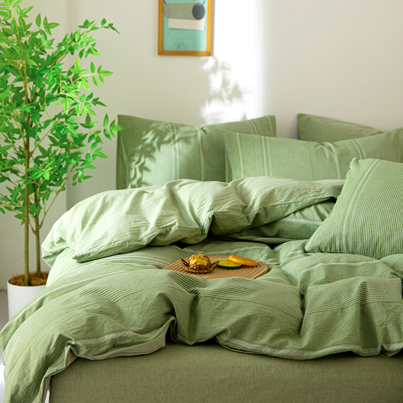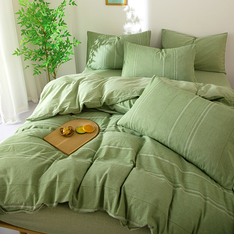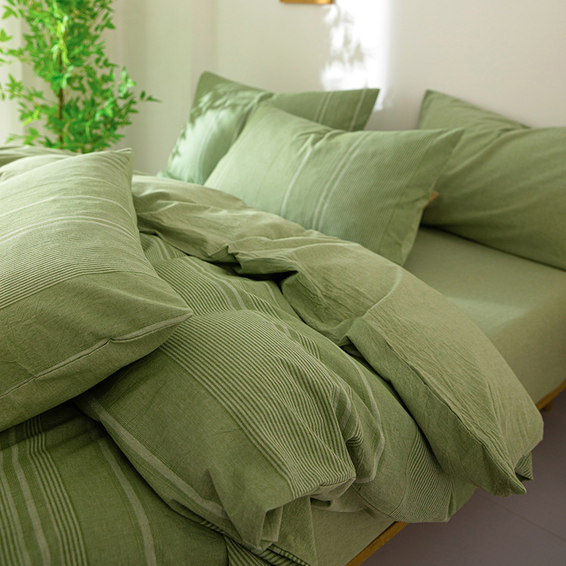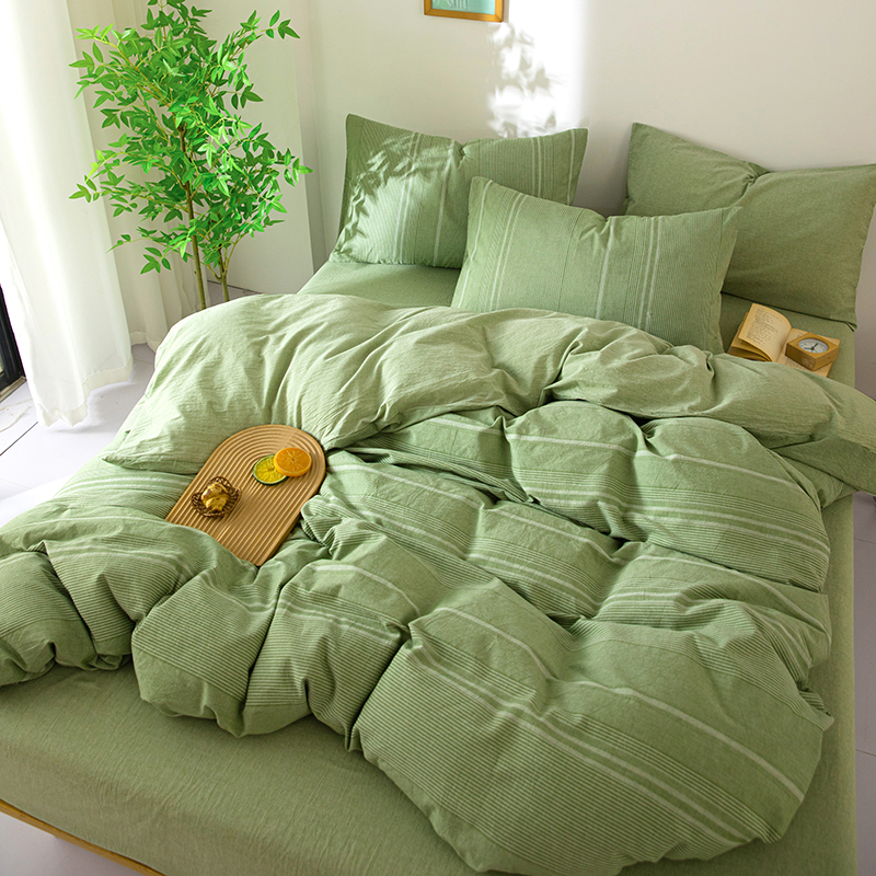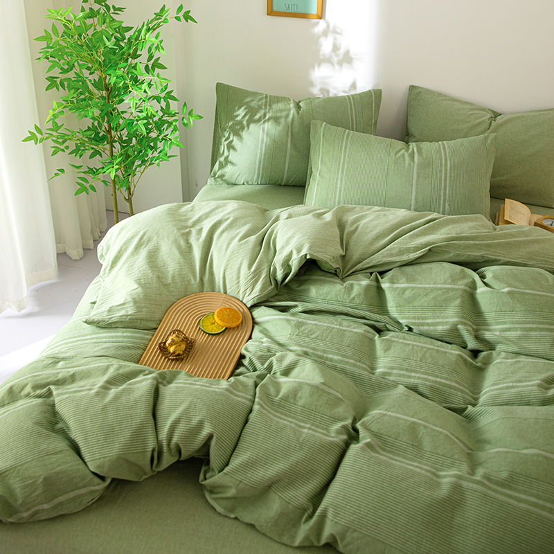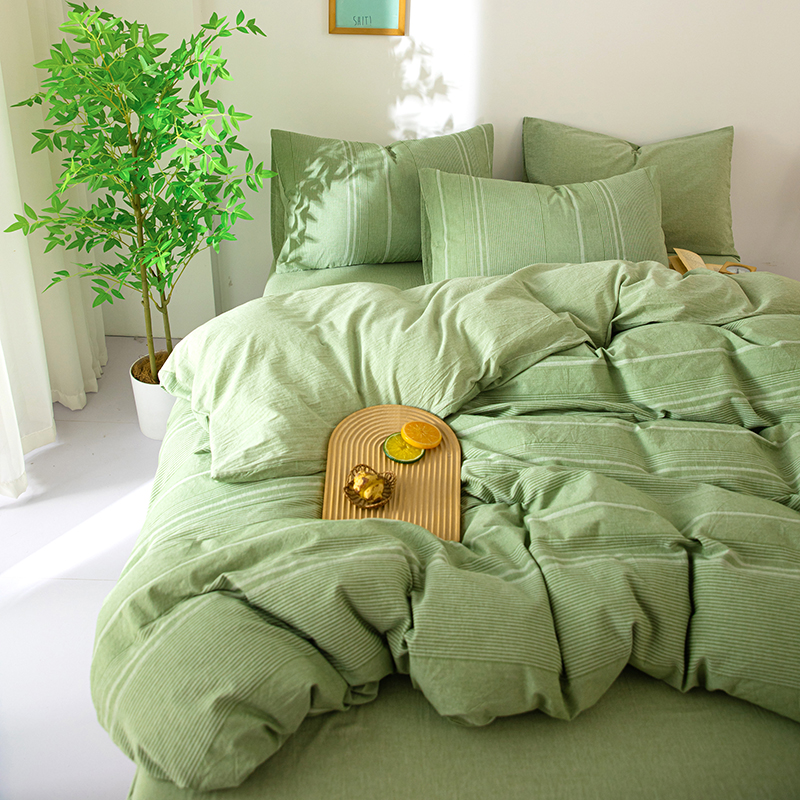 木兰花 2024新款全棉色织提花水洗棉四件套 苔藓绿