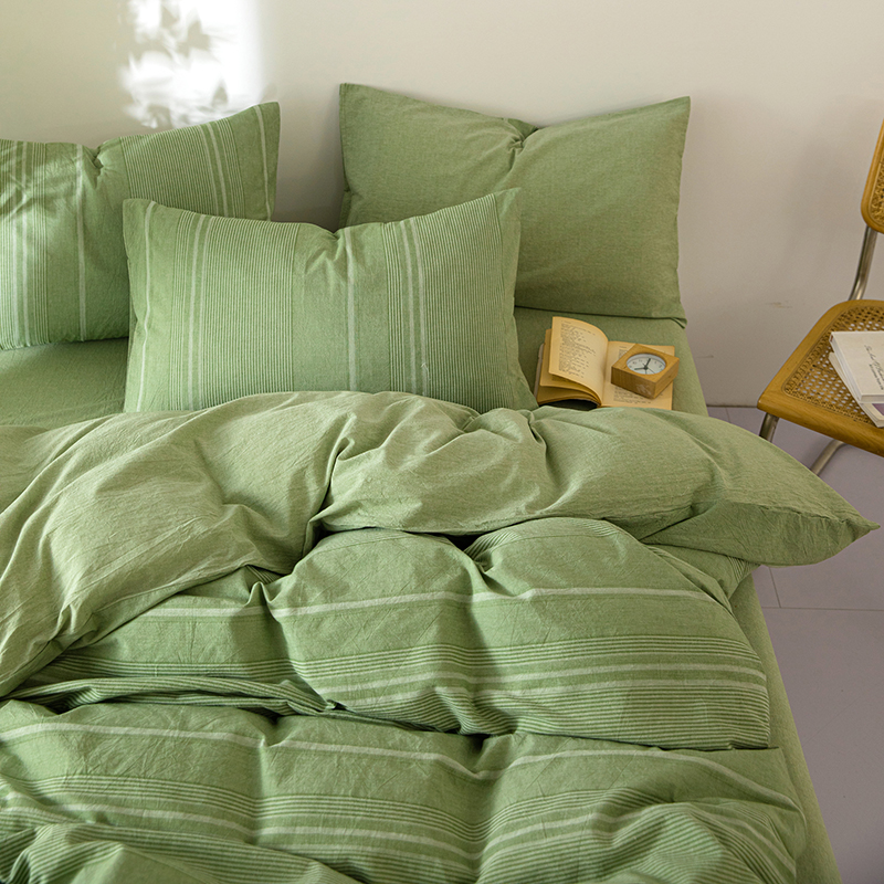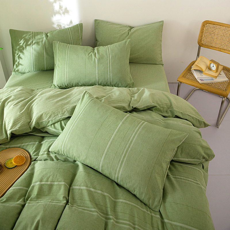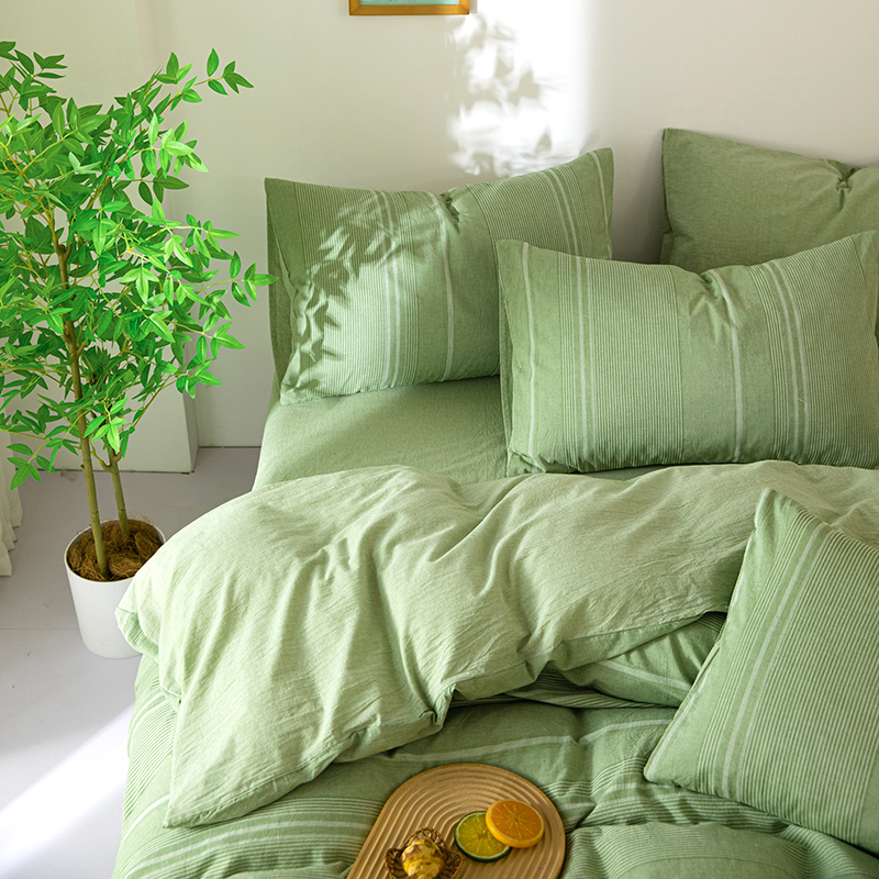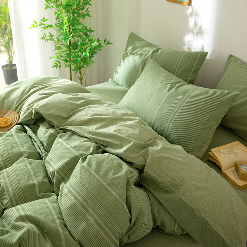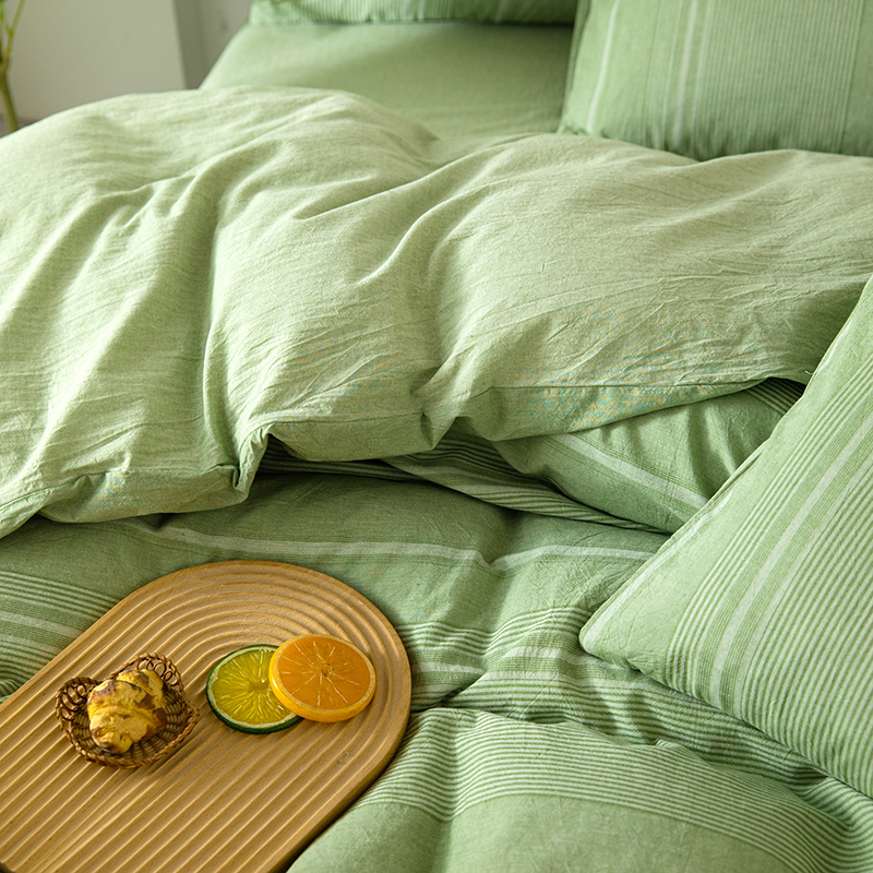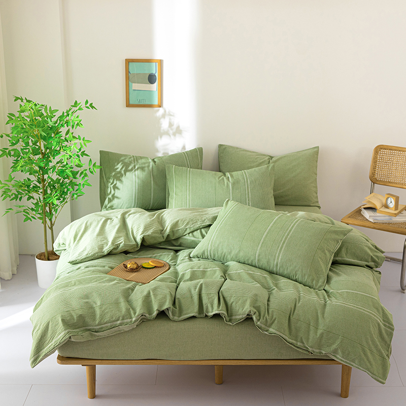 木兰花 2024新款全棉色织提花水洗棉四件套 苔藓绿