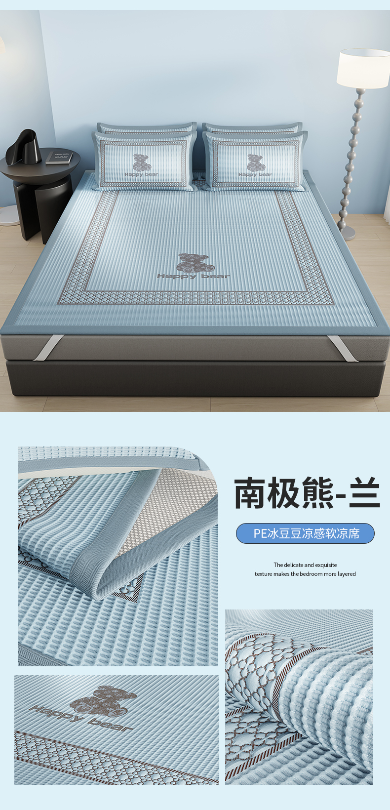 商品名称:伊被源 2024新款冰豆豆凉感PE软凉席--南极熊 南极熊-兰