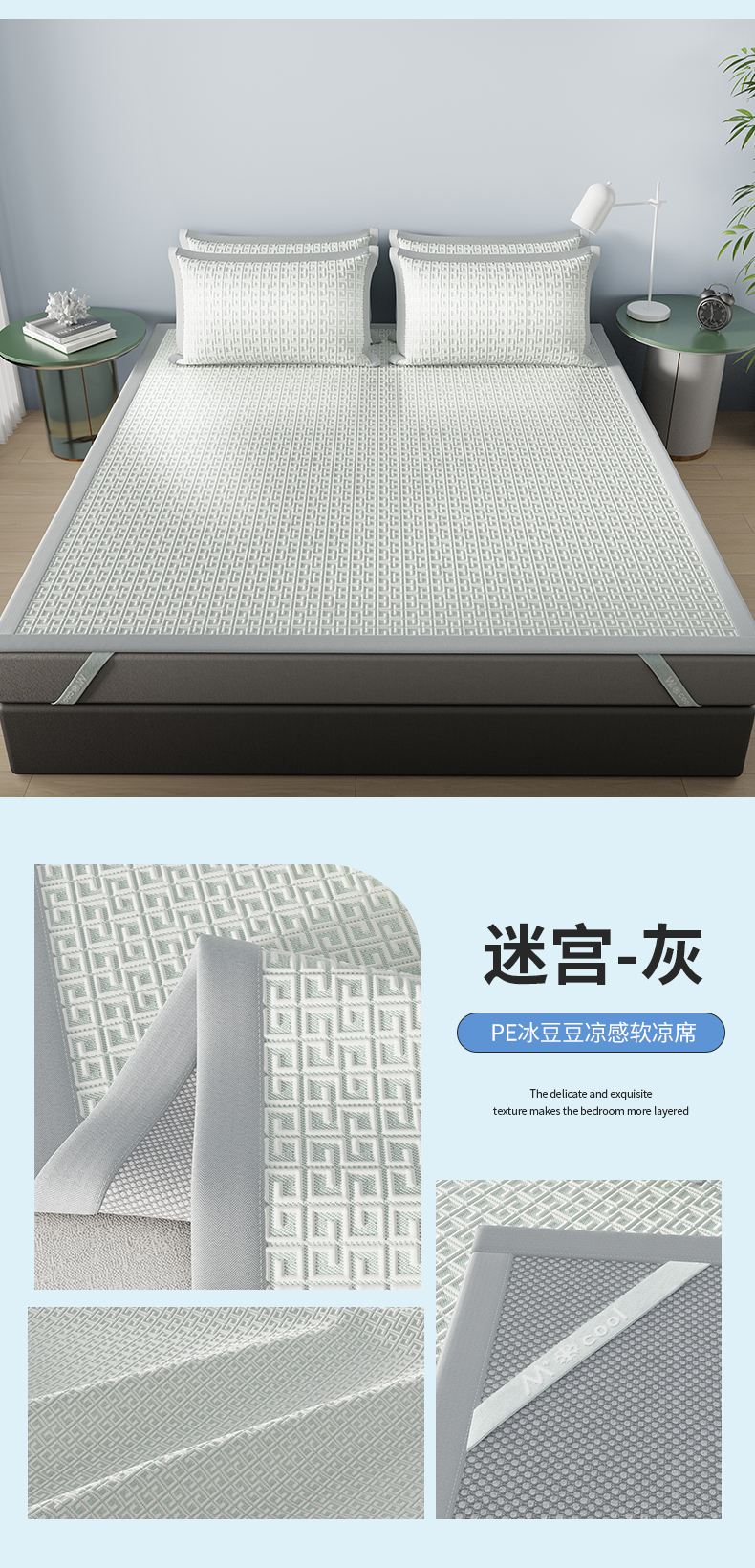 商品名称:伊被源 2024新款冰豆豆凉感PE软凉席--迷宫 迷宫-灰