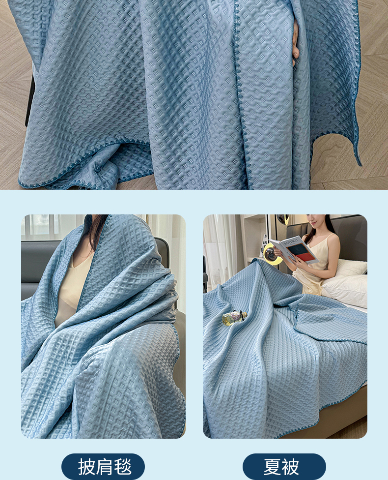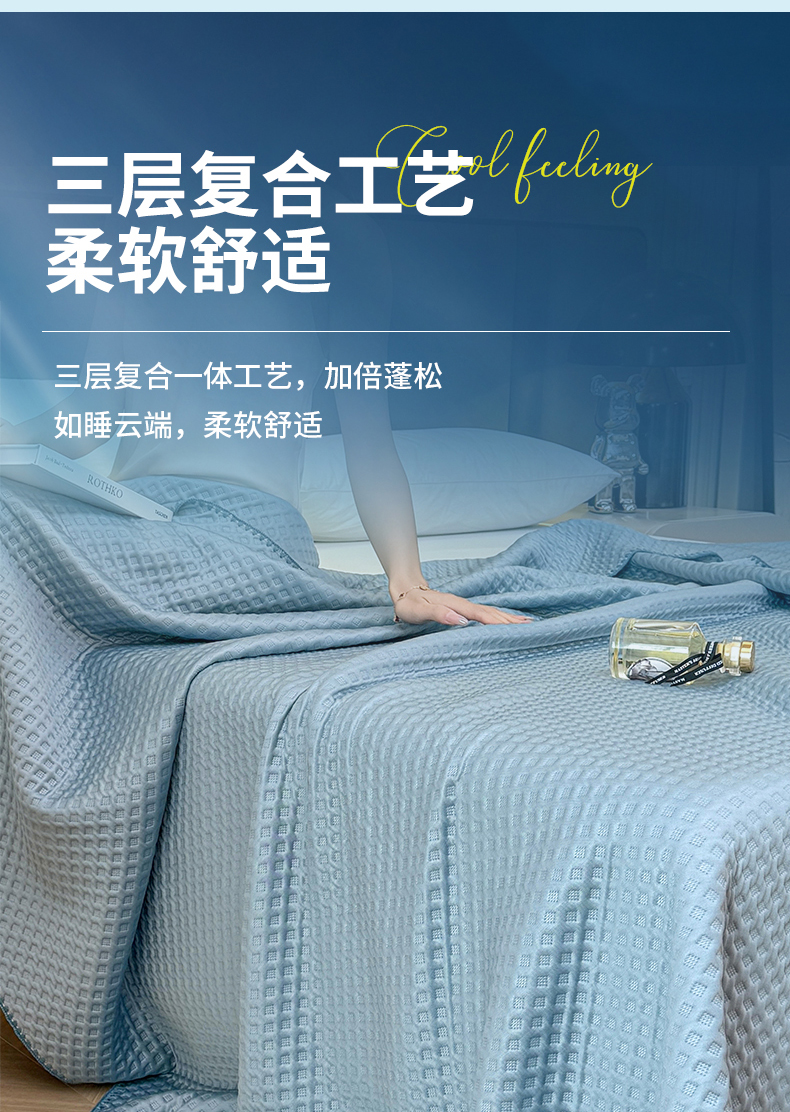 (总)伊被源 2024新款A类华夫格凉感丝盖毯点点夏被,云川绿,元气粉,天空蓝,气质灰