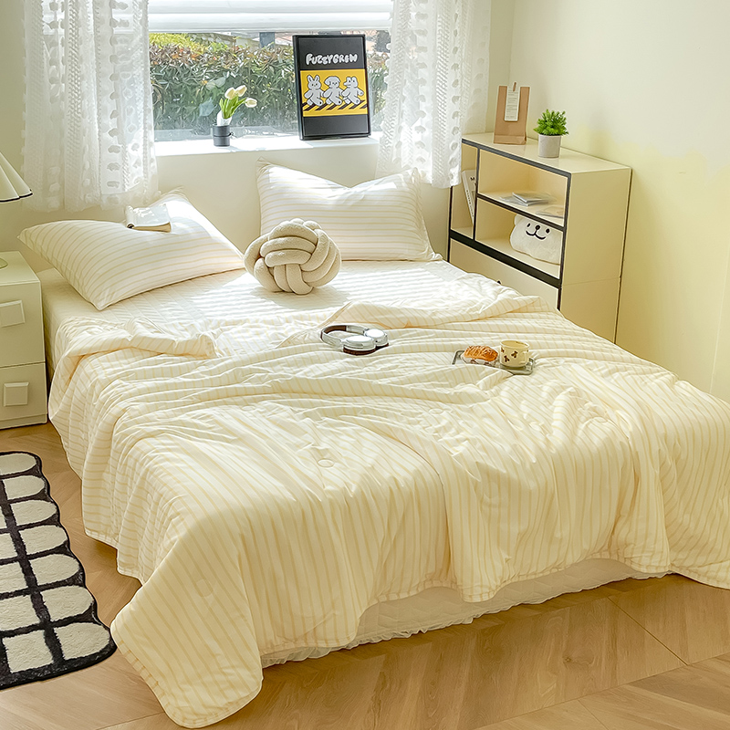 Mr.pig猪先生水洗棉 2024新款5A抗菌针织棉印花夏被 黄条