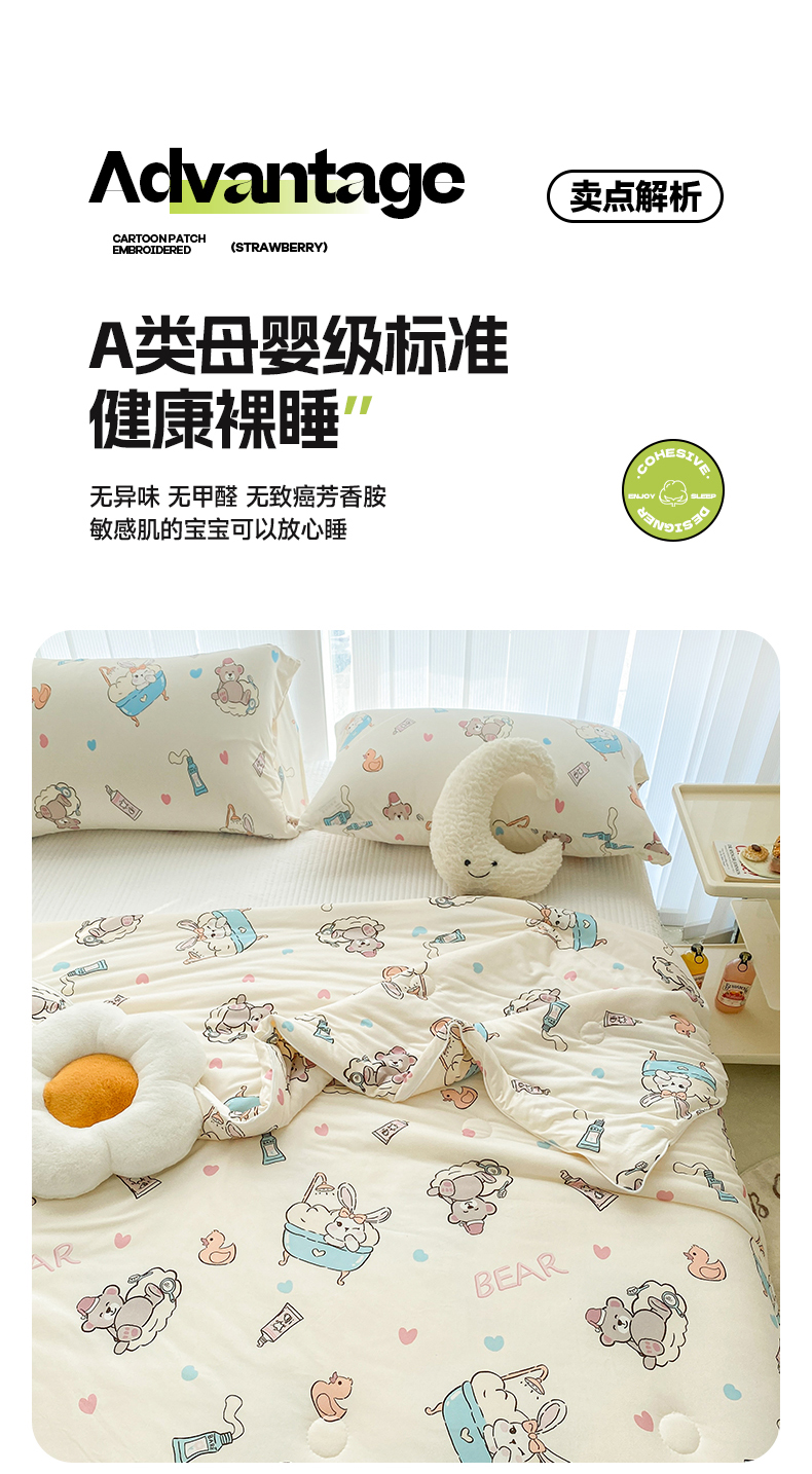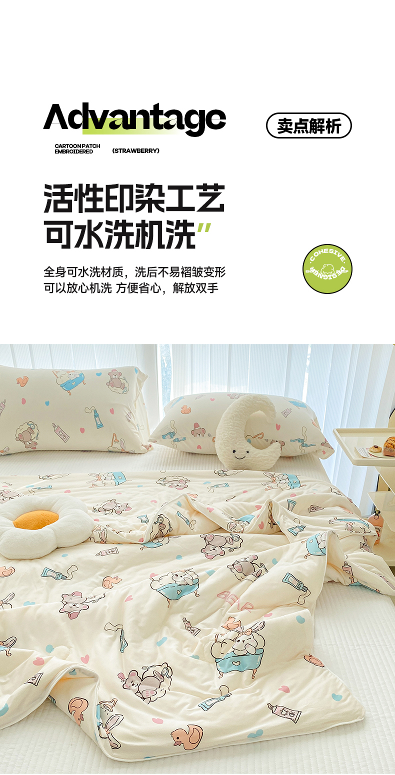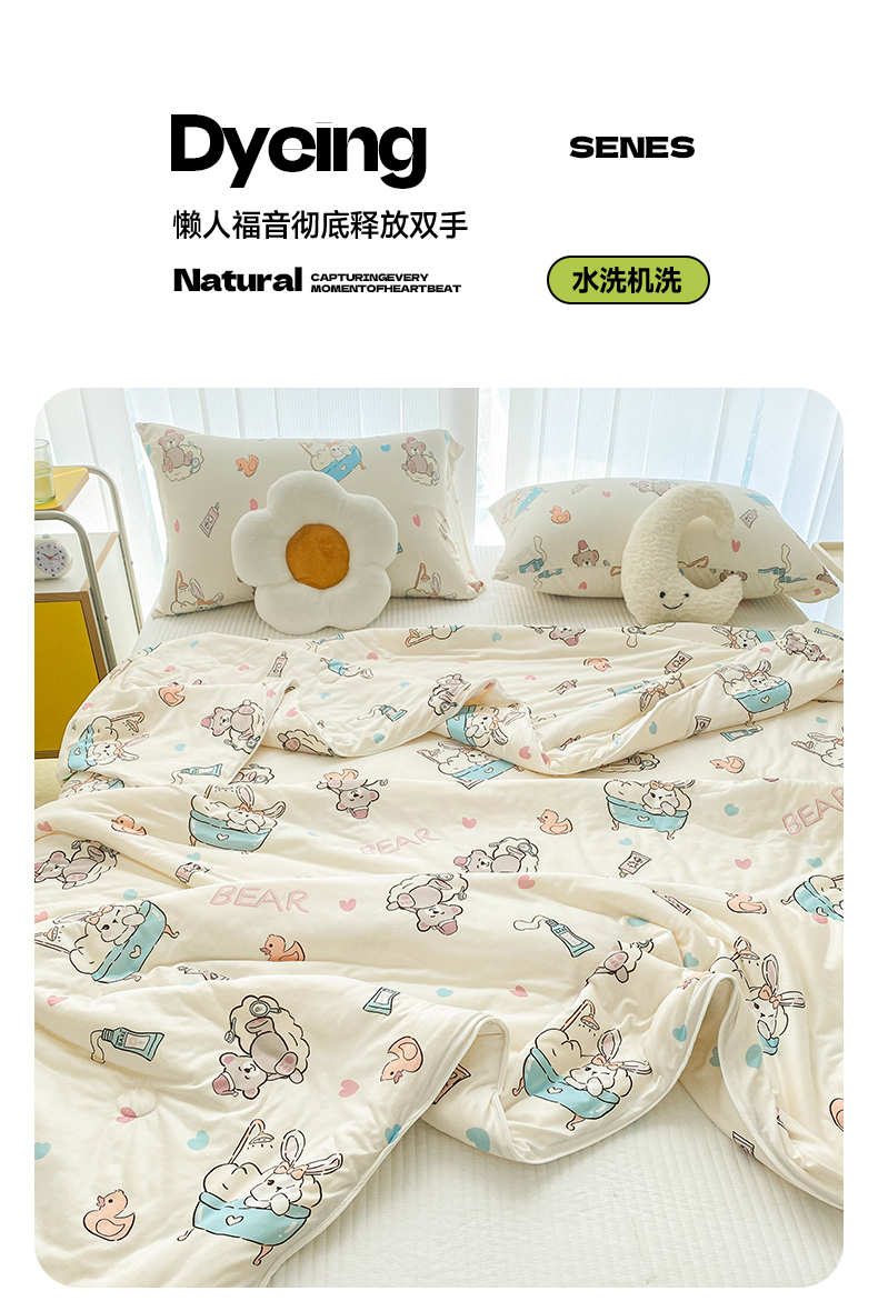 (总)寐眠家纺 2024新款A类母婴级针织棉印花大豆夏被,动物世界,嘟嘟熊,花花兔,开心猫,可爱猫,恐龙漫画,绿恐龙,汽车之家,森林狗,淘气猫,小黄鸭,小恐龙,小汽车,小兔乐园,小熊,星空兔,熊猫宝宝,长耳兔