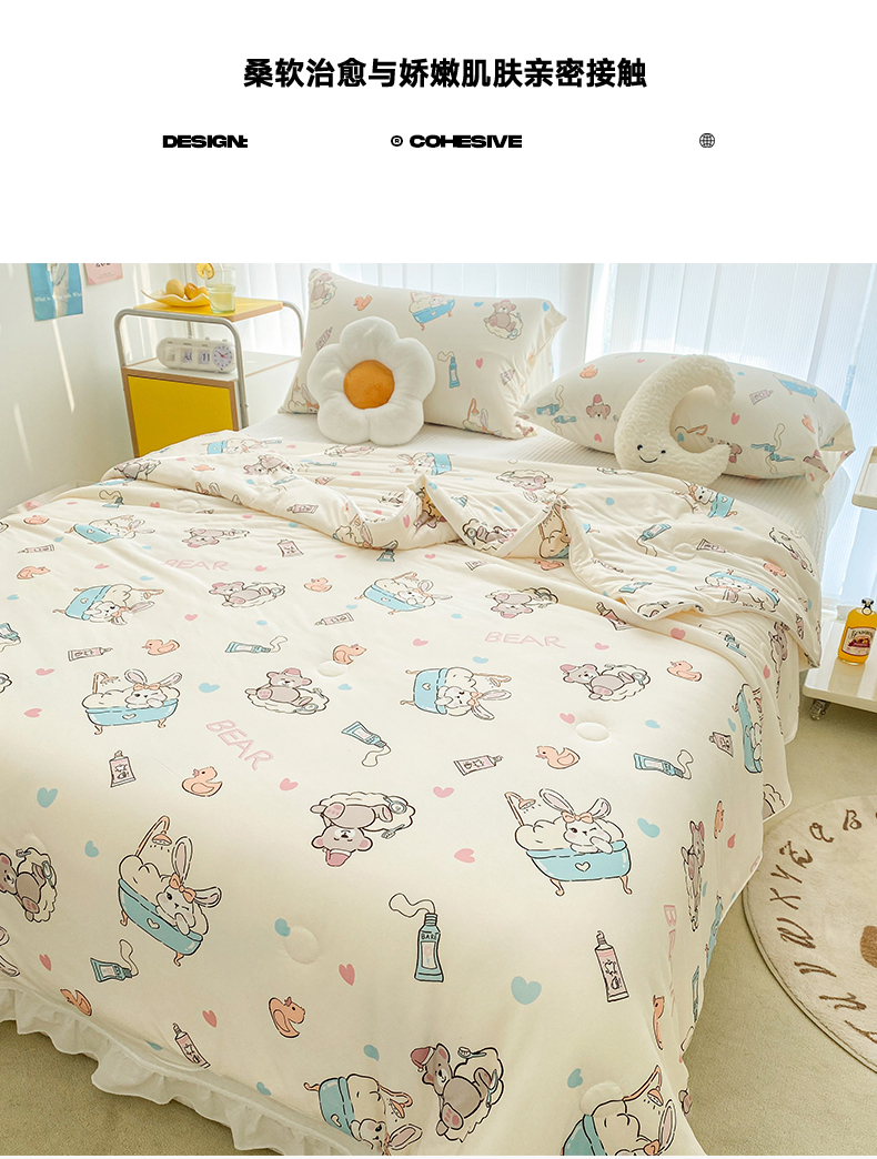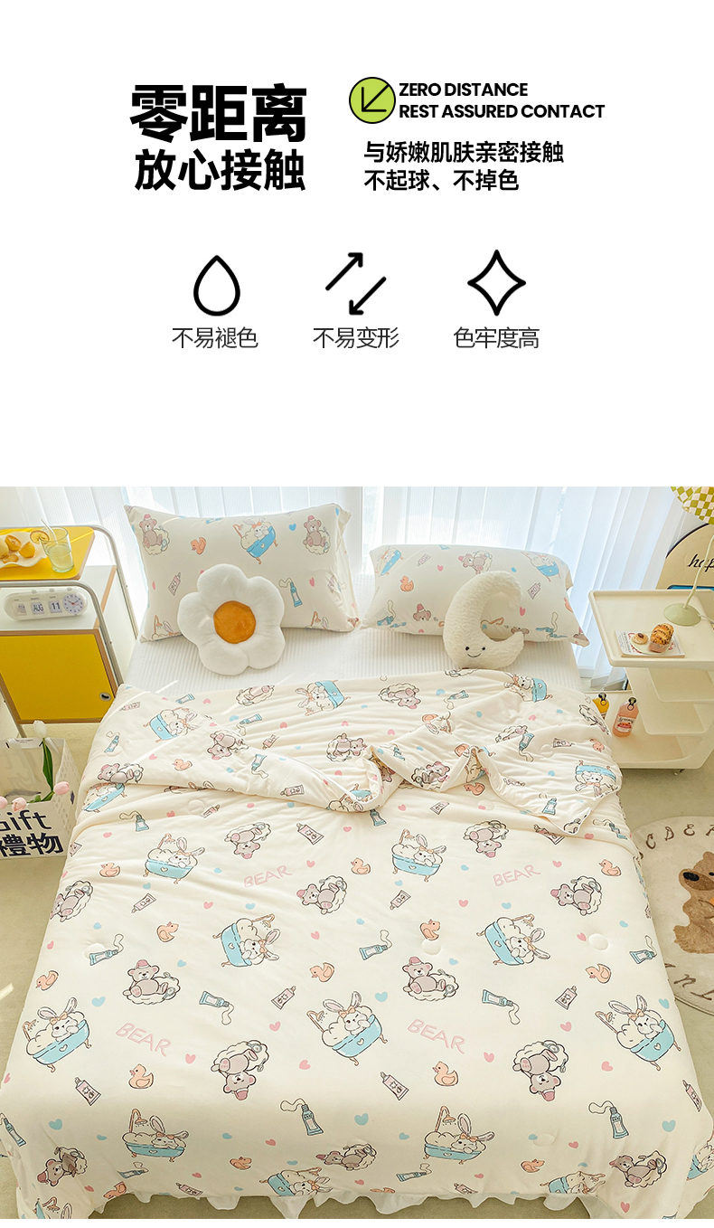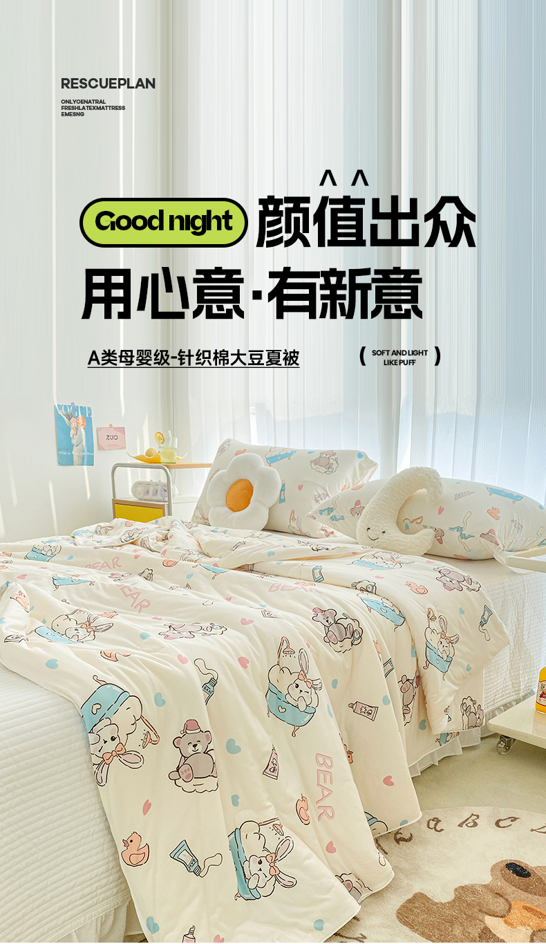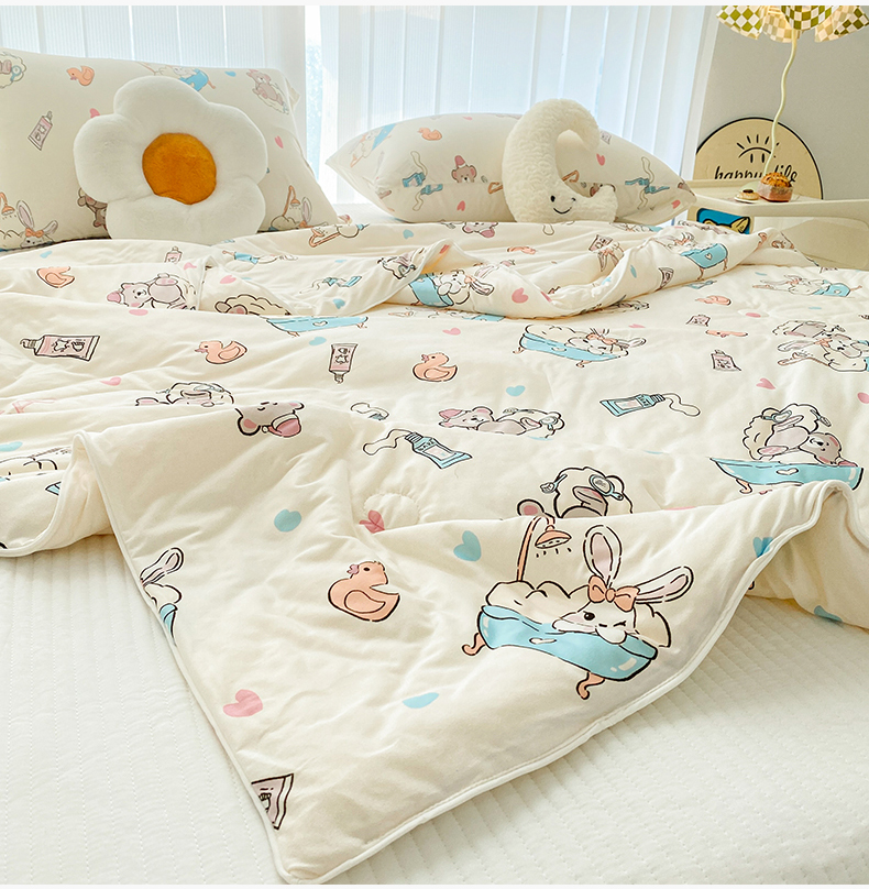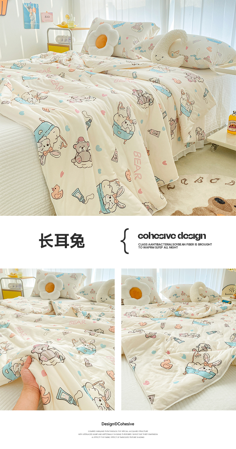 寐眠家纺 2024新款A类母婴级针织棉印花大豆夏被 长耳兔