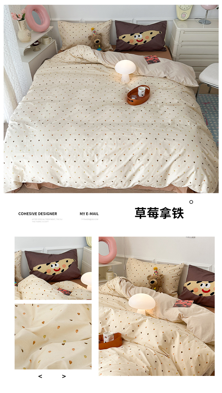 商品名称:昔可 新款创意枕套时尚柔舒全棉四件套 草莓拿铁