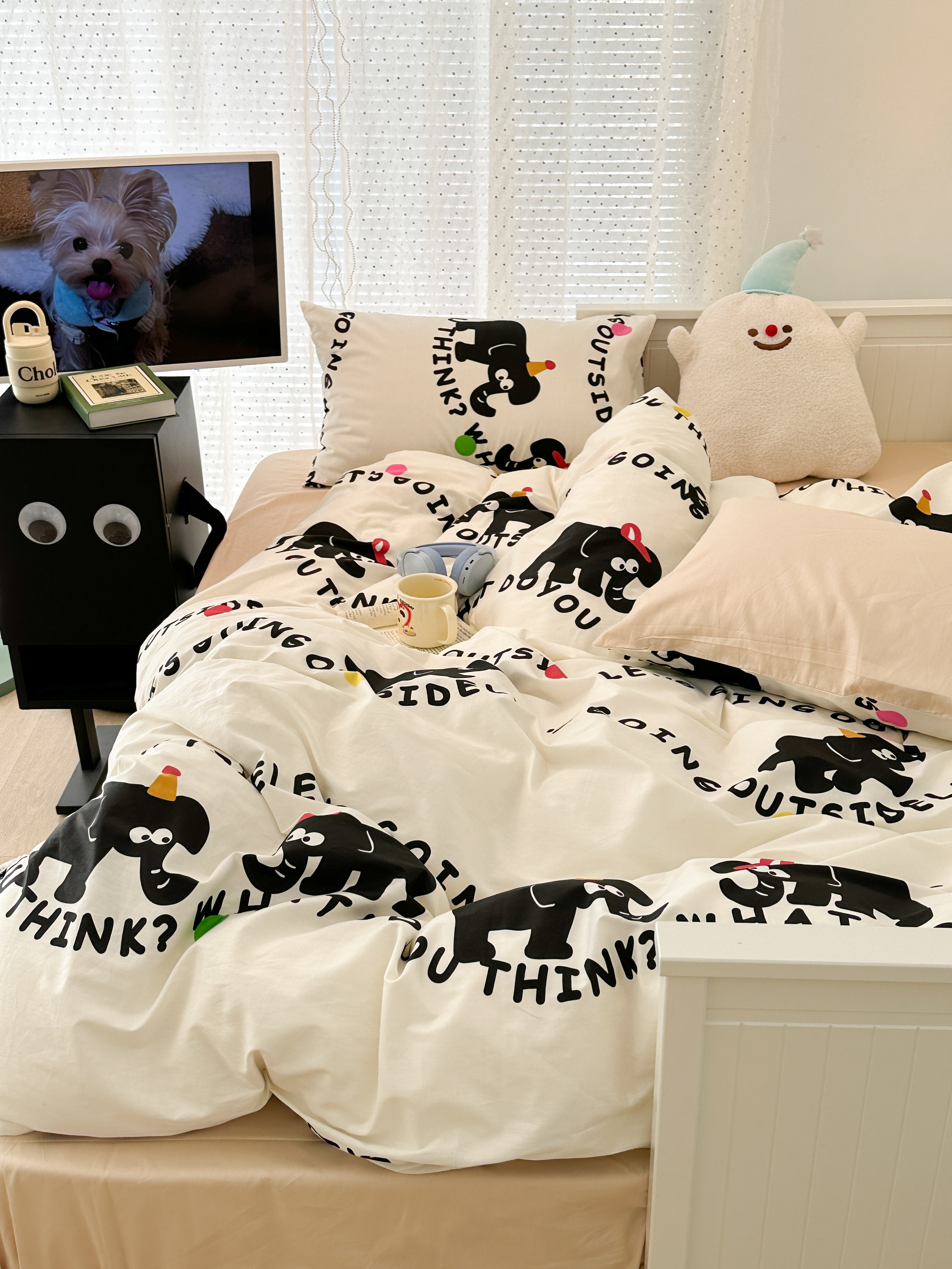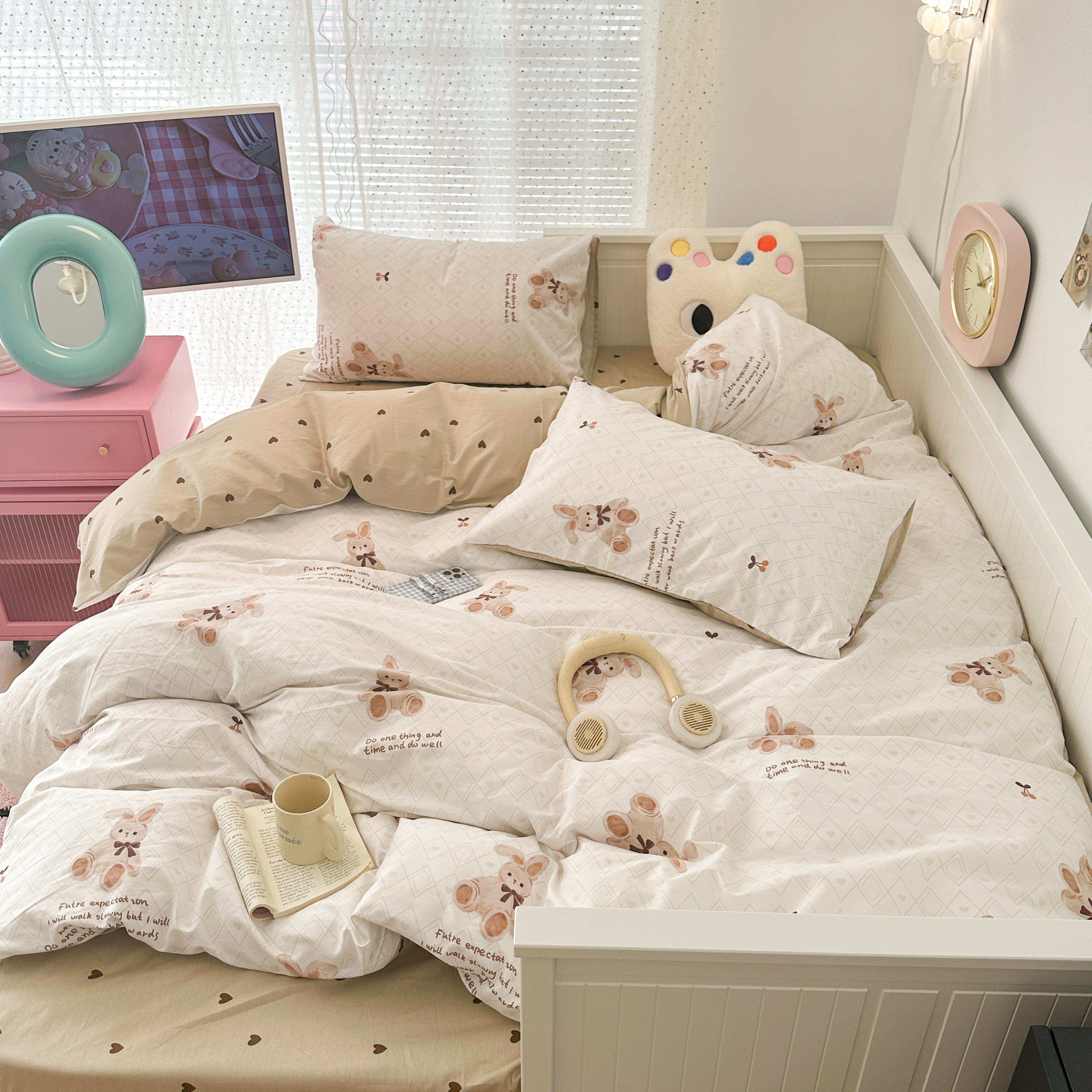 (总)昔可 新款多巴胺卡通简约风可爱亲肤四件套