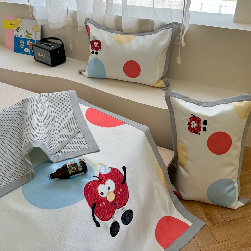 柚子YOUTH 2024新款高端养生900D冰丝绣花凉席 波点果果