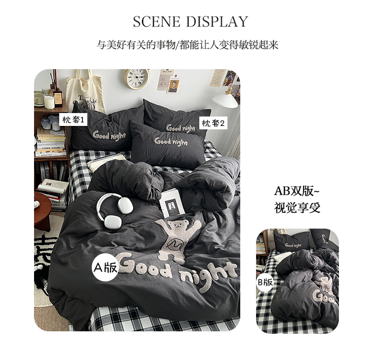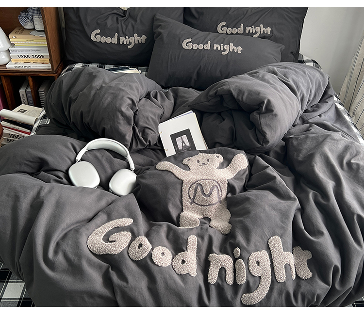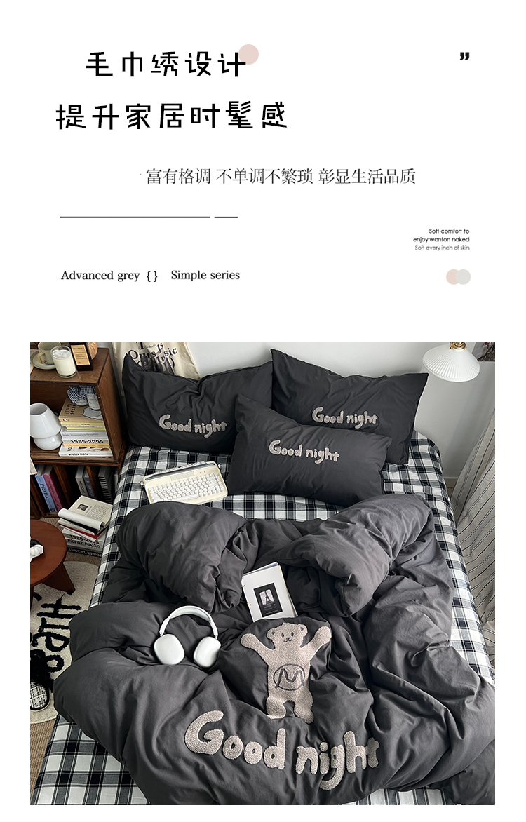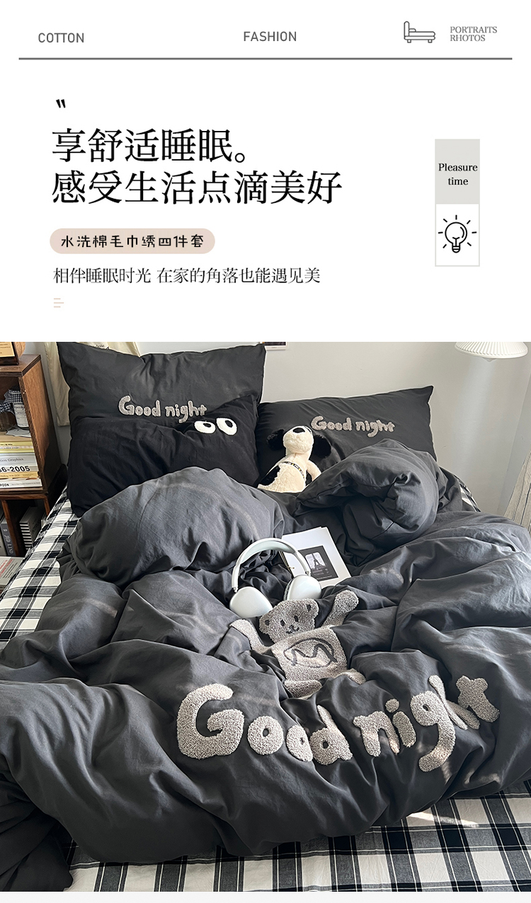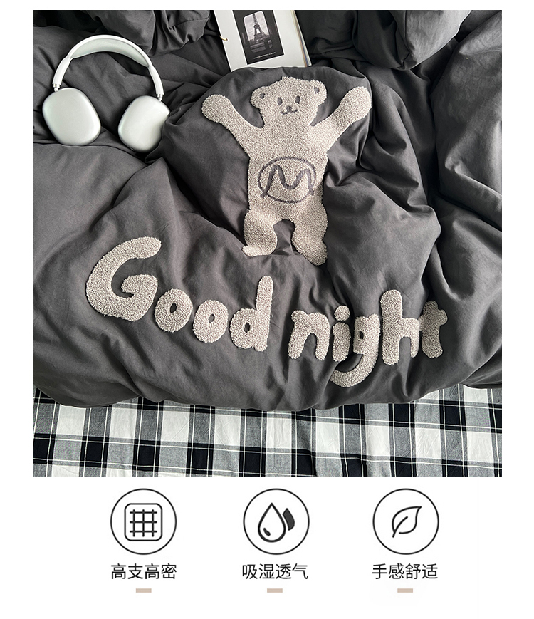 当前位置: 91家纺网 > 商品网购 > 床品套件 > 四件套 > 水洗棉四件套 > 原素可可爱爱毛巾绣水洗棉四件套 Good night熊灰格