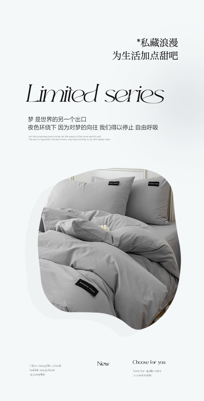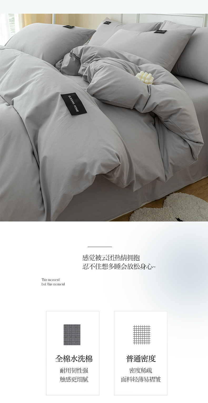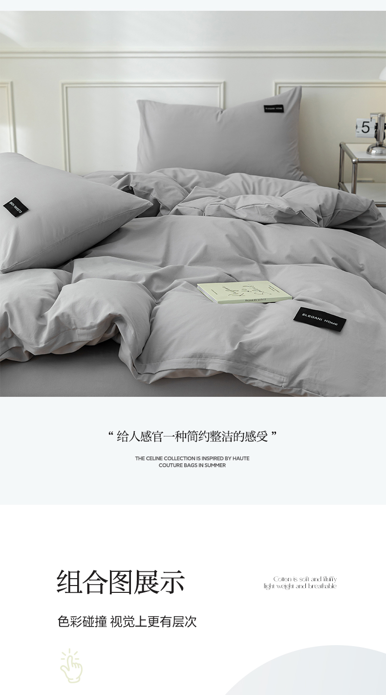 九沐良品 新款纯色双拼四件套 简悠-浅灰