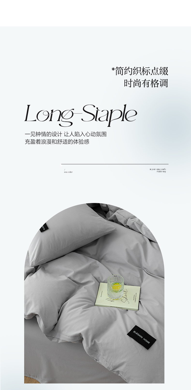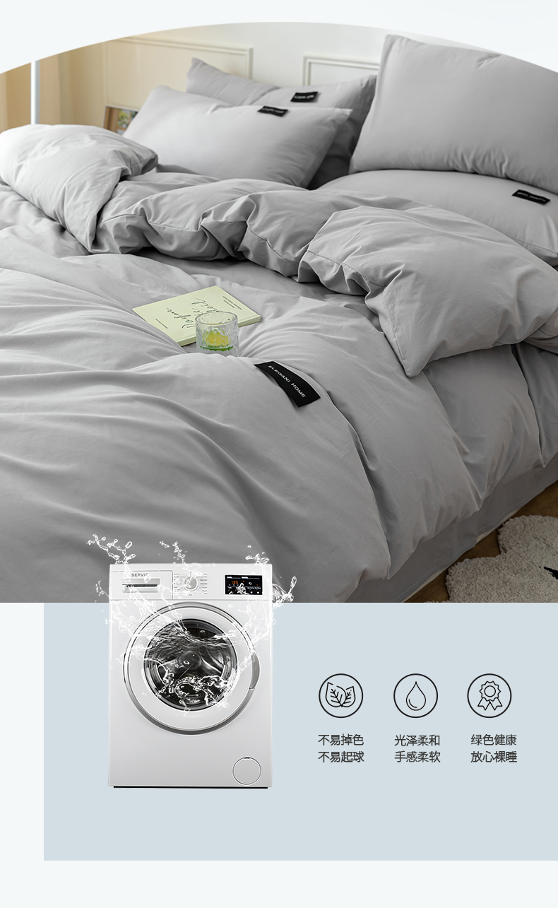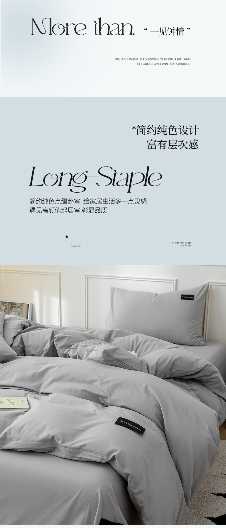 商品名称:九沐良品 新款纯色双拼四件套 简悠-浅灰