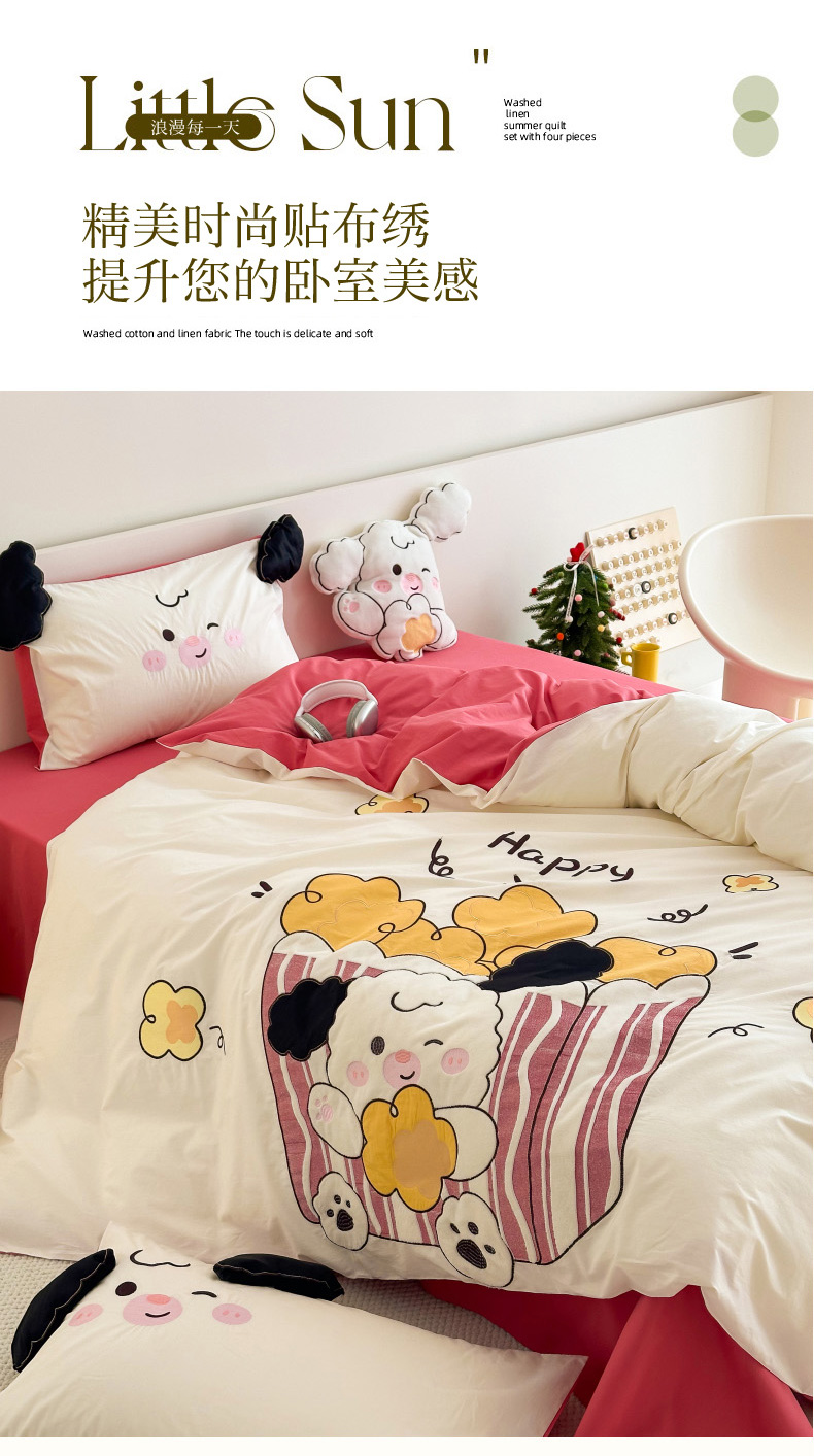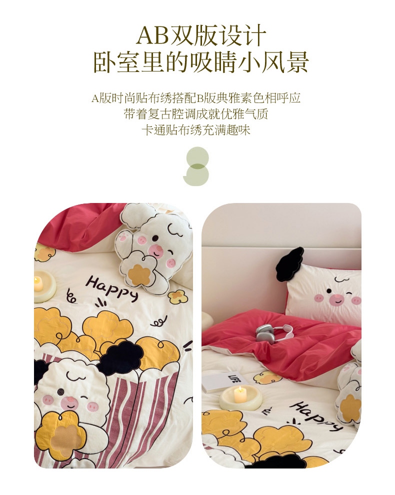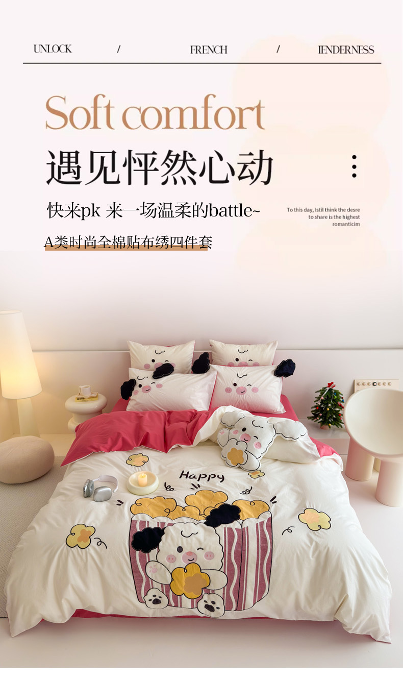 当前位置: 91家纺网 > 商品网购 > 床品套件 > 四件套 > 全棉普通四件套 > (总)柠馨 2024新款卡通贴布绣加厚定织全棉水洗棉四件套