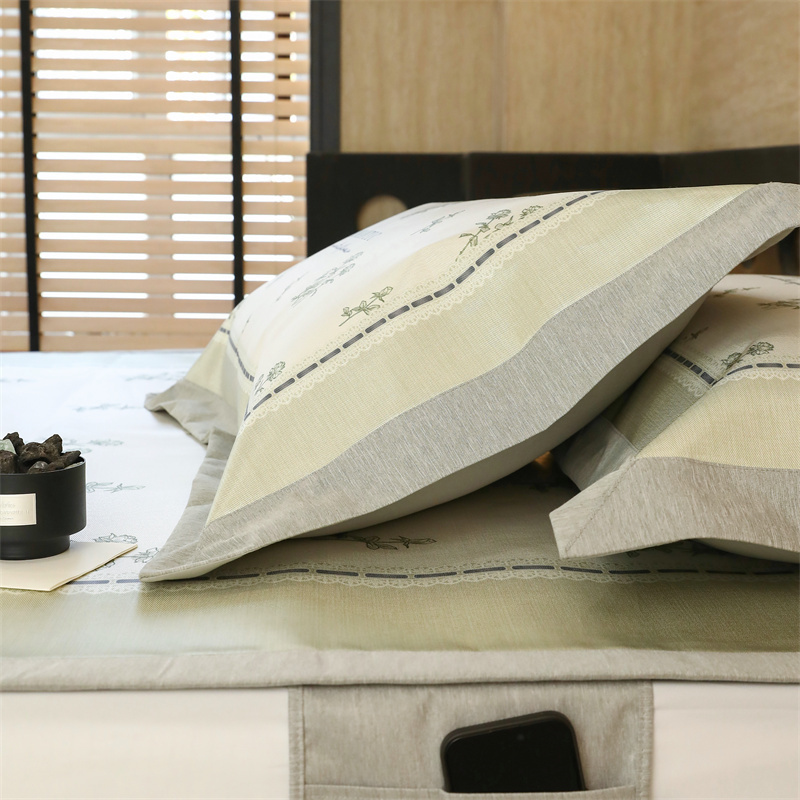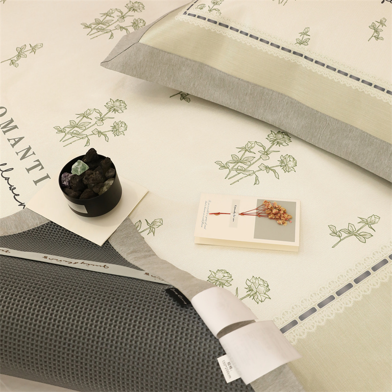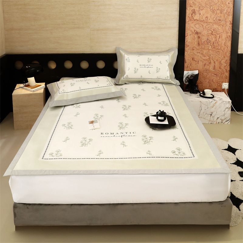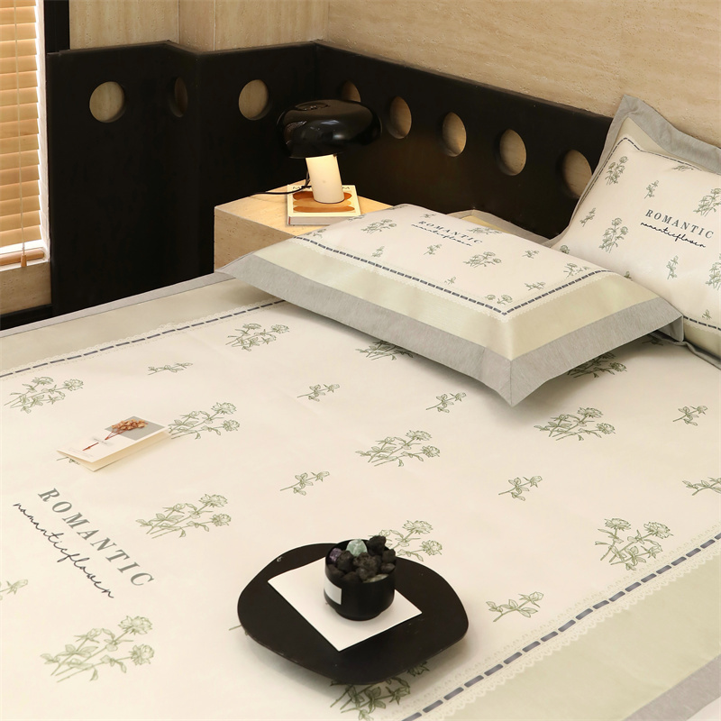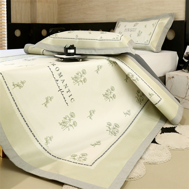 商品名称:橘滋 2024新款轻奢简约法式数码印花冰丝凉席-场景二 芮萩-绿